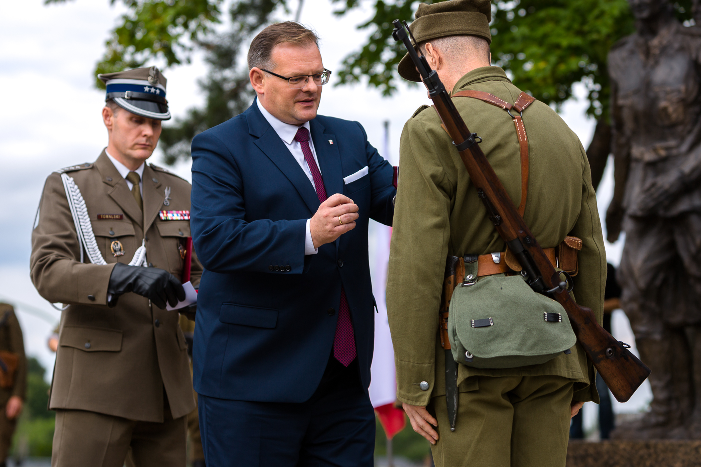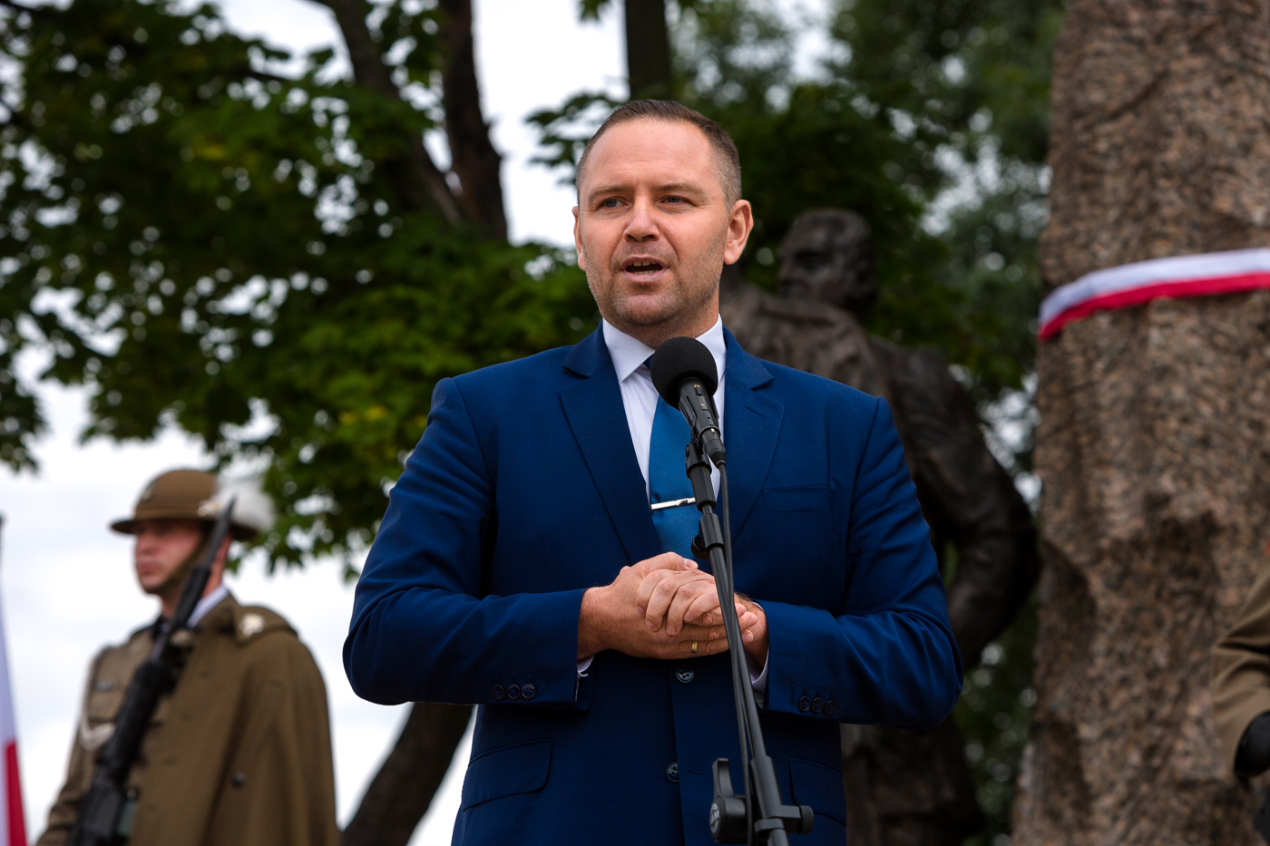 Przestrzeń publiczna wolnej, suwerennej i demokratycznej Polski wypełnia się znakami historycznej prawdy, prawdy o tych dobrych i prawdy o tych złych. W całej Polsce upadają sowieckie pomniki zniewolenia, hańby, barbarzyństwa i totalitaryzmu. Powstają pomniki prawdziwych bohaterów, tak jak tutaj w Mielcu (...) To pomnik społecznej pamięci, tożsamości Mielca i pomnik historycznej rozwagi. Pokazaliście w nim obraz polskiego narodu, który nie lękał się ani sowieckiego komunizmu, ani niemieckiego nazizmu (...) Jest mieczem polskiej pamięci.