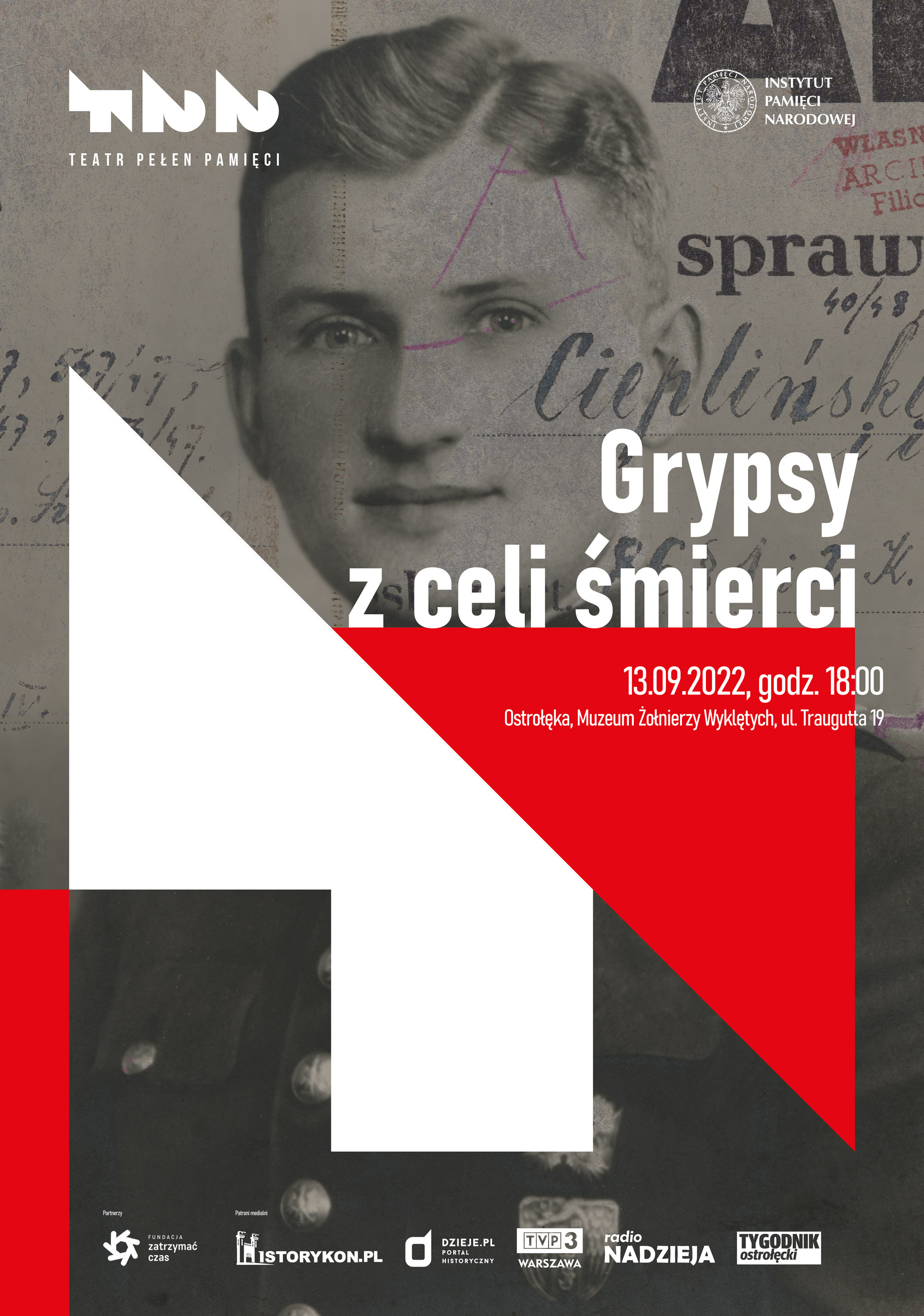 We wtorek 13 września 2022 r. w Muzeum Żołnierzy Wyklętych w Ostrołęce wystawiony został spektakl „Grypsy z celi” z udziałem Marcina Kwaśnego.