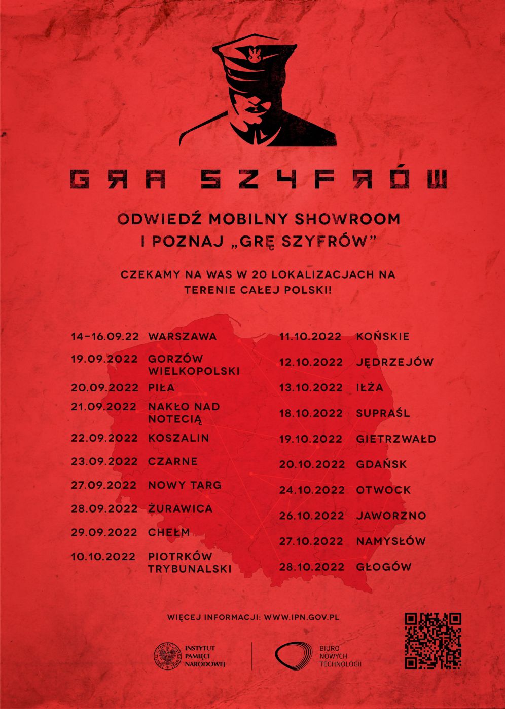 Po inauguracji 14 września 2022 roku na terenie Sejmu RP, wystawa mobilna wyruszyła w trasę po Polsce. Mieszkańcy 20 miejscowości, w szczególności młodzież, mogli za darmo zapoznać się z ,,Grą Szyfrów”. W każdym mieście wystawa gościła jeden dzień. Finał projektu odbył się 28 października 2022 w Głogowie.