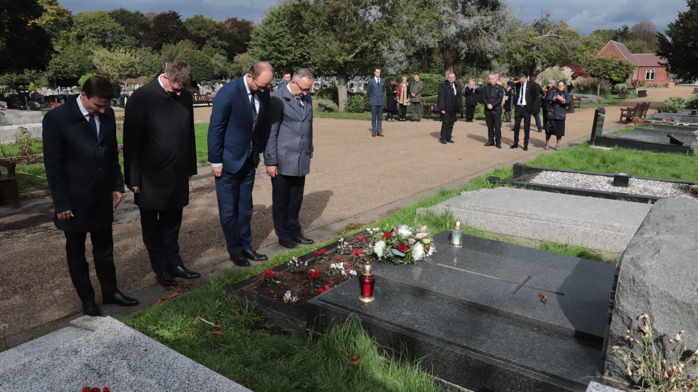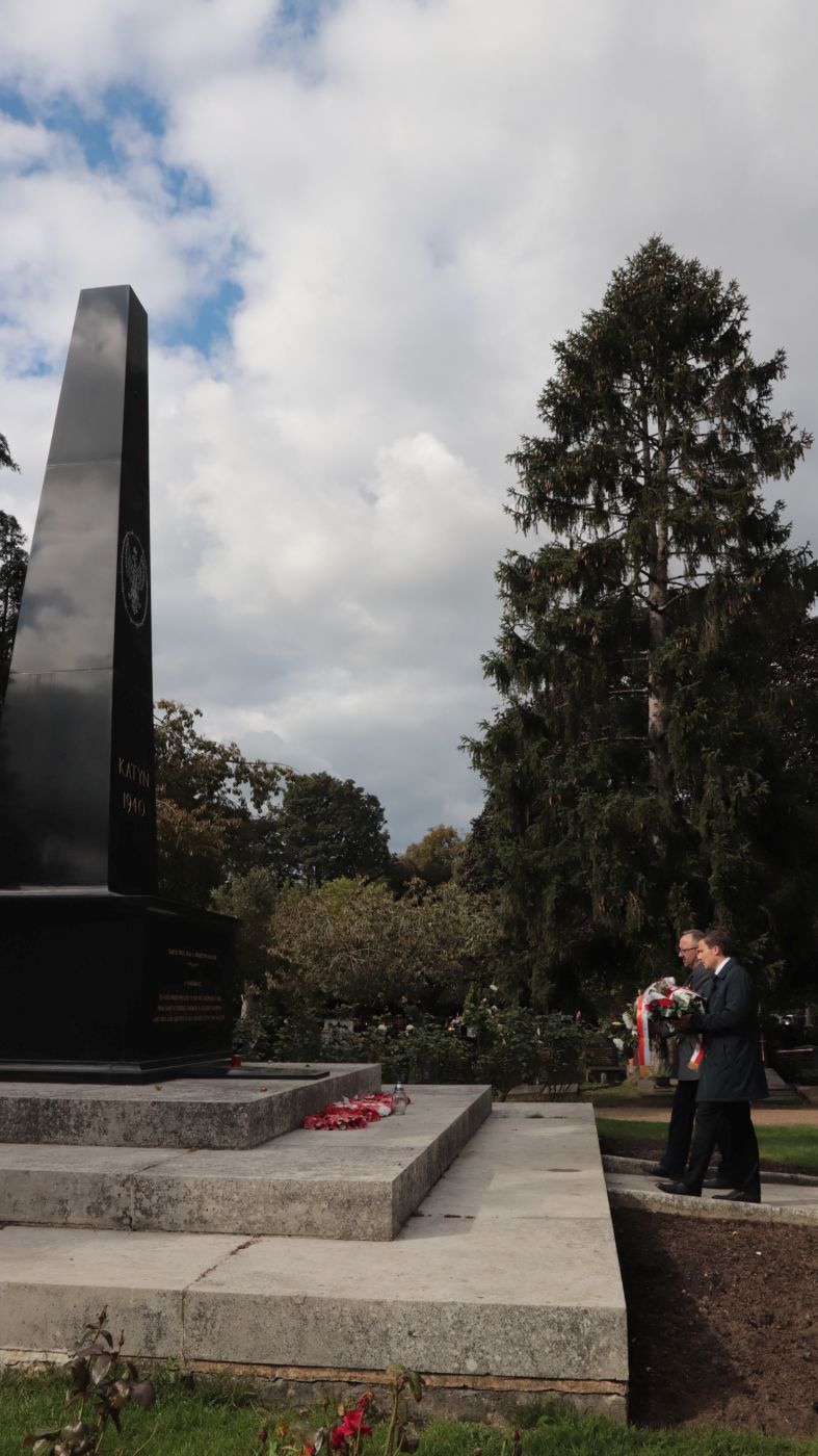Złożenie kwiatów pod Pomnikiem Katyńskim na Cmentarzu Gunnersbury – Londyn, 28 września 2022. Fot. Adam Siwek (IPN)