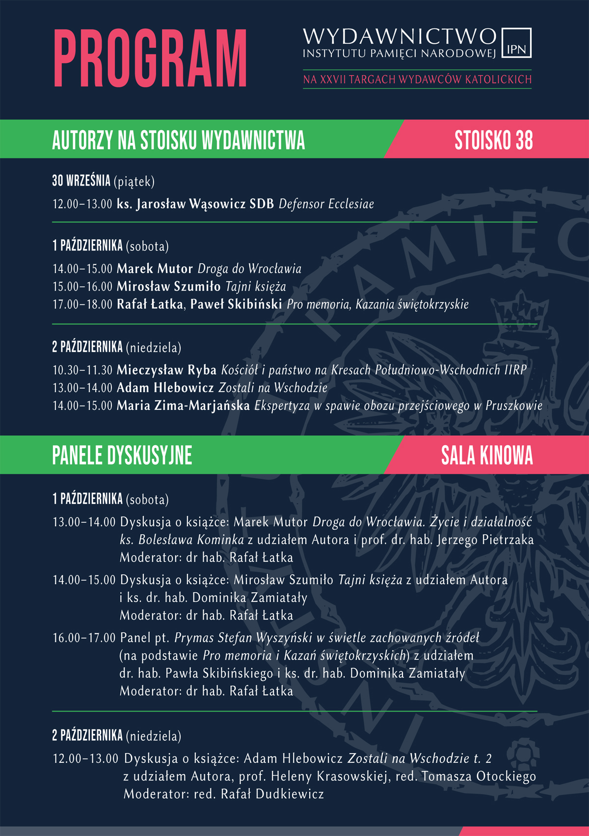17.00 – 18.00 Rafał Łatka, Paweł Skibiński, Pro memoria, Kazania Świętokrzyskie kard. Stefana Wyszyńskiego