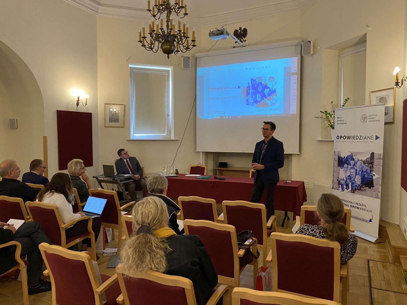 Podczas warsztatów Artur Kłus zachęcał również do odwiedzenia serwisu Opowiedziane.edu.pl, który umożliwia zapoznanie się z archiwalnym zasobem IPN w zakresie historii mówionej. Jak wskazał, „intuicyjna funkcjonalność strony pozwala w szybki sposób wybrać interesujące nas fragmenty z zarejestrowanych wspomnień”. – Z nagrań możemy przygotować zadania dla uczniów lub na przykładzie historii danego Bohatera opowiedzieć o ważnym wydarzeniu historycznym – dodał Artur Kłus.