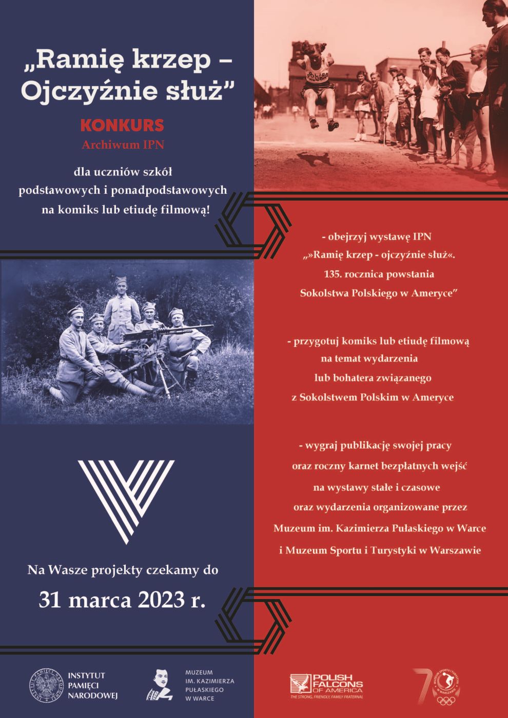 Konkurs organizowany jest w 135. rocznicę powstania Sokolstwa Polskiego w Ameryce i w związku z wystawą, przygotowaną przez Archiwum IPN w Muzeum im. Kazimierza Pułaskiego w Warce, zawierającą bezcenne dokumenty i muzealia przekazane do zasobu Instytutu przez Związek Sokolstwa Polskiego w Ameryce.