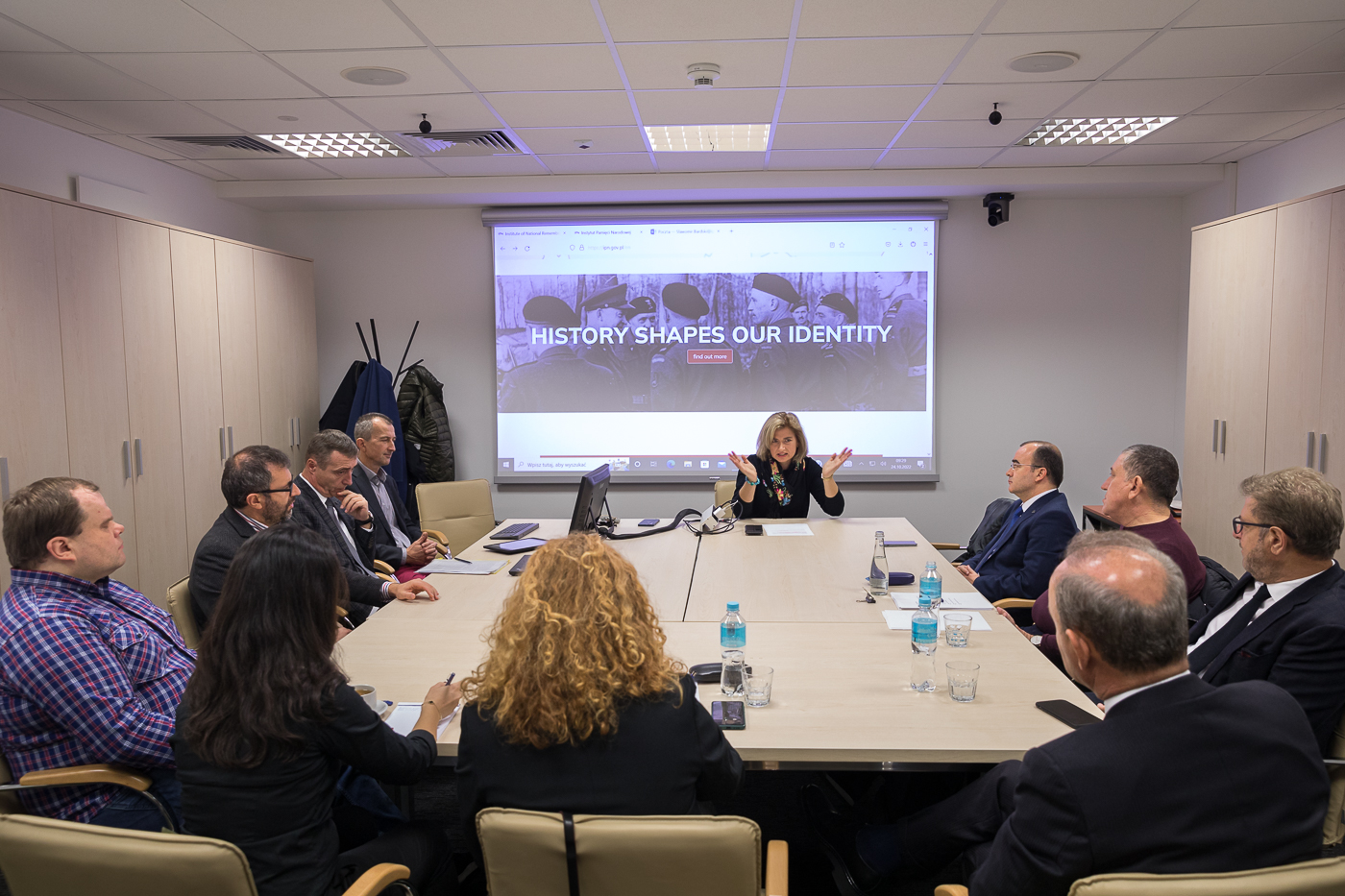 Wizytę zorganizowało Biuro Współpracy Międzynarodowej IPN. Gości oficjalnie powitała dyrektor tego biura – Agnieszka Jędrzak. Przedstawiła strukturę IPN, z uwzględnieniem zasobu archiwalnego oraz roli pionów: śledczego, naukowego edukacyjnego, lustracyjnego, a także Wydawnictwa oraz utworzonych w 2016 r. Biura Poszukiwań i Identyfikacji oraz Biura Upamiętniania Walk i Męczeństwa. Dodała, że struktura IPN w ostatnim czasie powiększyła się o nowe komórki: Biuro Nowych Technologii, odpowiadające za cieszącą się popularnością, przetłumaczoną na piętnaście języków „Grę Szyfrów”, Biuro Wydarzeń Kulturalnych, upowszechniające historię poprzez sztukę, oraz Biuro Przystanków Historia. Wspomniała o ważnym aspekcie działalności Instytutu, jakim jest reagowanie na zniekształcanie prawdy historycznej. Omówiła ponadto wysiłki prezesa IPN związane z dekomunizacją przestrzeni publicznej w Polsce i burzeniem pomników wdzięczności Armii Czerwonej. Uzupełnienie informacji o działalności IPN stanowiły filmy w języku angielskim, przedstawiające rolę Instytutu w propagowaniu historii najnowszej. Goście z Albanii pytali głównie o kwestie związane z dekomunizacją w Polsce, a w szczególności o typowanie poszczególnych upamiętnień – świadectw obecności reżimu komunistycznego – do demontażu.