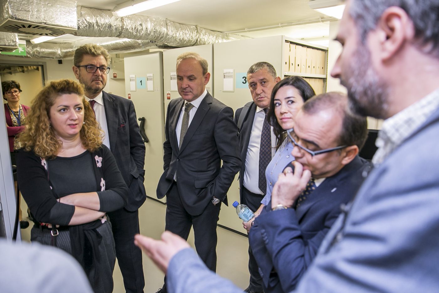 Program wizyty objął również Archiwum IPN, gdzie gości powitała dyrektor Marzena Kruk. Podczas spotkania Magdalena Mołczanowska zaprezentowała zasób i zadania Archiwum IPN. Reprezentanci albańskich instytucji odwiedzili magazyny archiwalne, gdzie mieli okazję obejrzeć warunki przechowywania i zabezpieczania materiałów archiwalnych. Poznali również procedury pozyskiwania i rejestracji tajnych współpracowników przez wojskowe organy bezpieczeństwa, a także strukturę, sposób tworzenia i wykorzystywania pomocy ewidencyjnych przez cywilne organy bezpieczeństwa państwa.