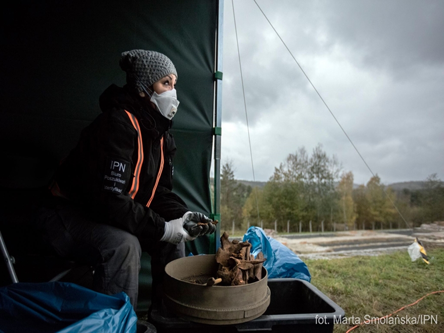 – Szczelina przeciwlotnicza: długa na 60 metrów, szeroka na 2 metry, a głęboka na metr siedemdziesiąt. Do tej szczeliny wrzucono szczątki – ciała 92 mężczyzn w wieku od 20 do 60 lat. I to nie tylko ciała mężczyzn, którzy już nie żyli, ale także osoby wciąż żyjące. Wciąż żyjące i wciąż oczekujące na to, że przyjdzie ostateczna pomoc, która nie przyszła. 92 ciała wrzucone jak śmieci, przykryte gruzem i zasypane ziemią. Były w tej ziemi przez blisko 80 lat. Ludzie, ich emocje, ich miłość, ich dramaty, każdy z tych 92 mężczyzn miał swoje życie, które zostało na blisko 80 lat zapomniane i zasypane, jak ludzki śmieć – przypomniał podczas konferencji prasowej prezes IPN dr Karol Nawrocki.
