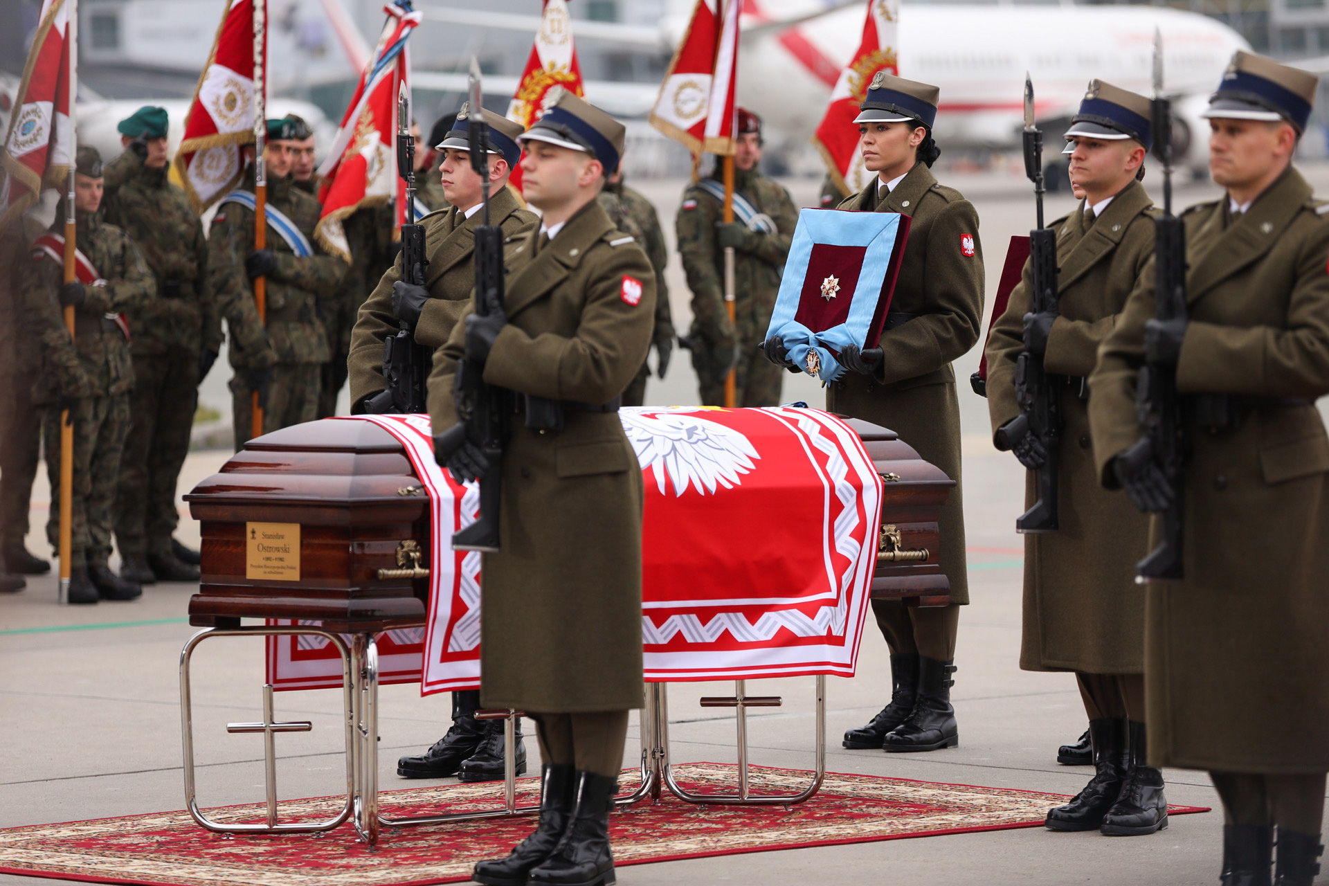 Następnie kondukt żałobny z trumnami prezydentów przejechał ulicami stolicy w asyście honorowej Wojska Polskiego.