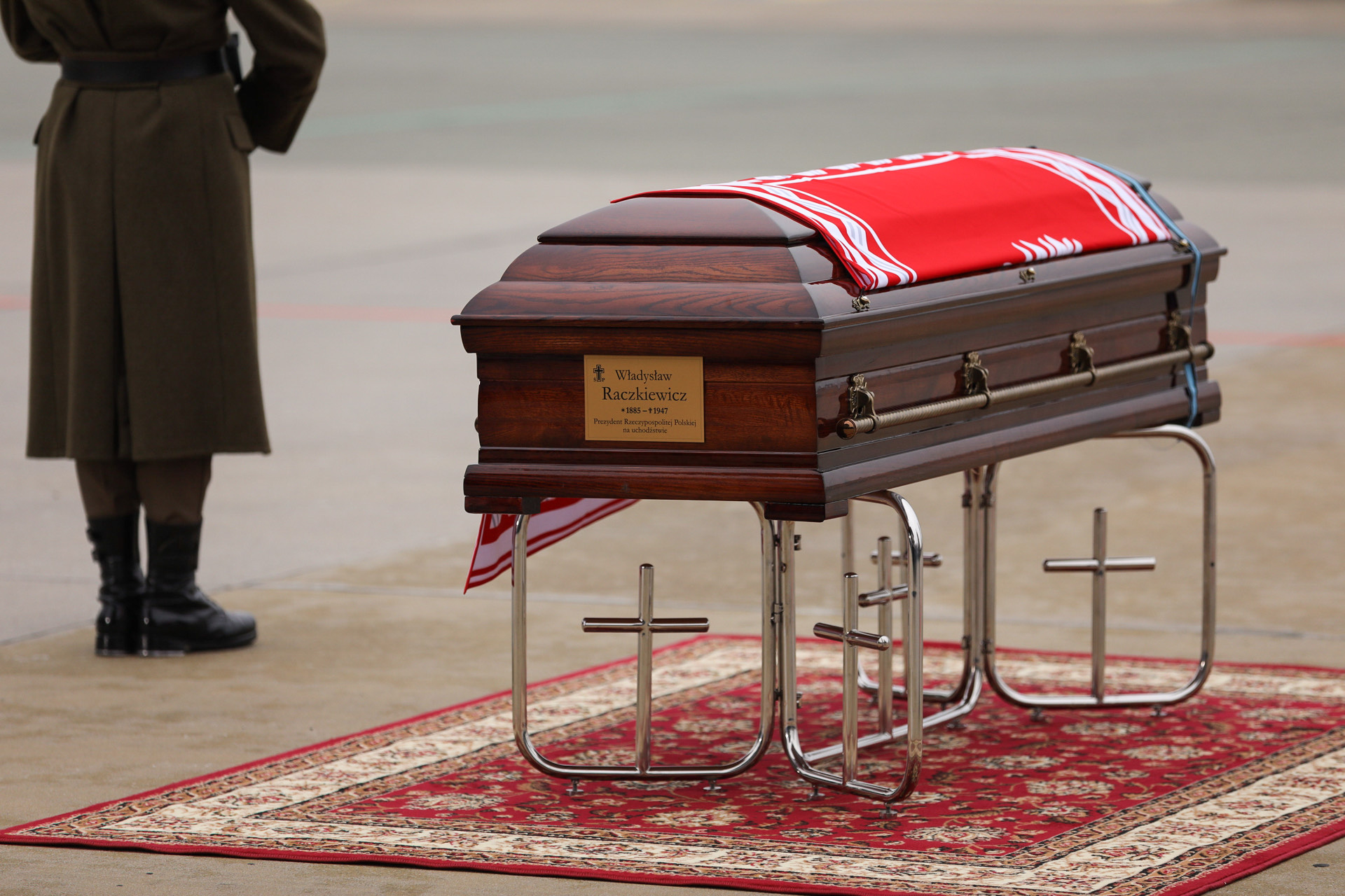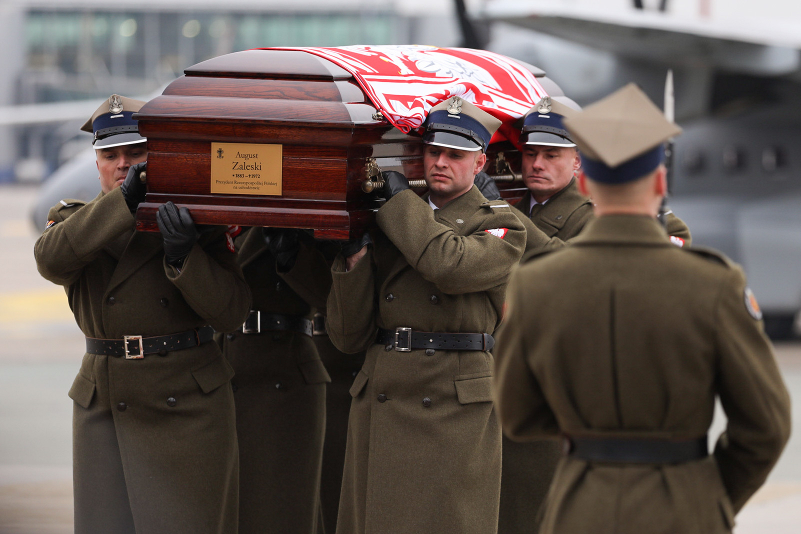 O godz. 13.00 samolot ze szczątkami trzech pierwszych prezydentów RP na uchodźstwie wylądował na płycie Wojskowego Portu Lotniczego na Okęciu. W imieniu polskiego rządu powracających prezydentów powitał premier Mateusz Morawiecki, który podkreślił: