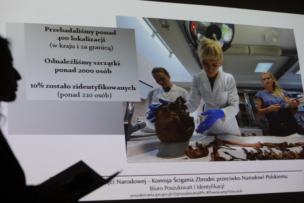 Mec. Anna Szeląg przybliżyła zebranym kolejne etapy poszukiwań, prowadzonych przez IPN w miejscach takich jak symboliczna powązkowska Łączka. Omówiła proces poszukiwania i identyfikacji ofiar systemów totalitarnych – od badań analiz źródeł historycznych do identyfikacji genetycznej. Opowiedziała m.in. o metodach, za pomocą których komuniści zacierali ślady zbrodni, wskazała drogi w docieraniu do miejsc ukrytych pochówków. Zaznaczyła także, że mimo wielu prac zakończonych sukcesem, wciąż nie udało się jeszcze odnaleźć miejsc pochówku dowódcy Kierownictwa Dywersji (Kedywu) i zastępcy komendanta głównego AK gen. Emila Fieldorfa „Nila”, rtm. Witolda Pileckiego oraz inspektora rejonowego ZWZ-AK Rzeszów. płk. Łukasza Cieplińskiego „Pługa”.