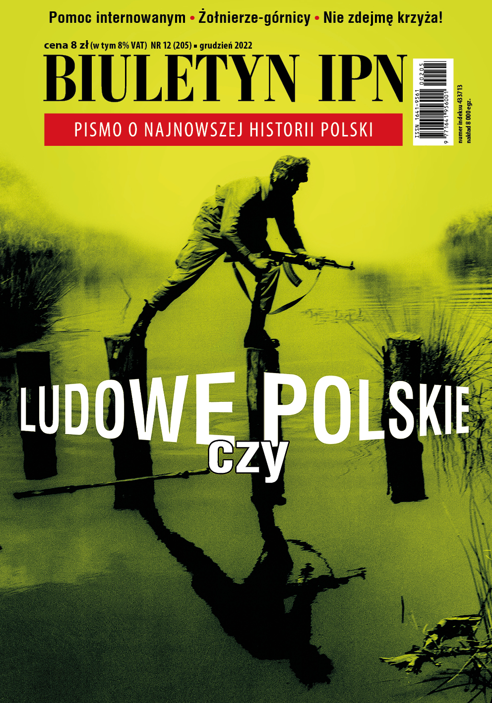 KSIĄŻKI Kamil Dworaczek, W cieniu radioaktywnej chmury. Konsekwencje katastrofy czarnobylskiej w Polsce Artur Ossowski, „Dzieci z zielonego autobusu”. Z zeznań o niemieckim obozie dla polskich dzieci przy ul. Przemysłowej w Łodzi (1942–1945) Jarosław Molenda, Alfred Szklarski – sprzedawca marzeń. Pierwsza biografia twórcy przygód Tomka Wilmowskiego Powstanie wielkopolskie 1918–1919, red. nauk. Olaf Bergmann Jerzy Kirszak, Bogusław Polak, Michał Polak, Generał broni Władysław Anders 1892–1970. Czyny i pamięć Tom Junes, Pokolenia PRL. Ruch studencki w Polsce 1944–1989 Konrad Graczyk, Sprawa Ignacego Kaczmarka. Studium przypadku niemieckiego zabójstwa sądowego z 1944 r. oraz rozliczeń z okupacją niemiecką Bartłomiej Noszczak, Orient zesłańców. Bliski Wschód w oczach Polaków ewakuowanych ze Związku Sowieckiego (1942–1945) Maiestati Rei Publicae Poloniae reddere proprium decus. Majestatowi Rzeczypospolitej Polskiej przywrócić własną chwałę, red. ks. Waldemar Gliński Andrzej Waśko, „Pan Tadeusz” – media pamięci PERIODYKI „Biuletyn IPN” nr 9/2022 – Szlaki nadziei „Biuletyn IPN” nr 12/2022 – Ludowe czy polskie wojsko „Biuletyn IPN” nr 11/2022 – Reparacje „Biuletyn IPN” nr 6/2022 – Polskie Siły Zbrojne na Zachodzie „Biuletyn IPN” nr 5/2022 – Zbrodnie spod czerwonej gwiazdy KOMIKSY Powstanie Warszawskie, tom I. Komiks paragrafowy W imieniu Polski Walczącej. Zeszyt 1. Zamach na Kutscherę 1 lutego 1944 Wojenna odyseja Antka Srebrnego 1939–1944. Zeszyt 2. Ucieczka z nieludzkiej ziemi 1940 r. W imieniu Polski Walczącej. Zeszyt 3. Akcja pod Arsenałem 26 marca 1943 Wojenna odyseja Antka Srebrnego 1939–1944. Zeszyt 3. Szczury Tobruku 1941 r. Akcja „Góral”. 12 sierpnia 1943 Polskie Radio. Wrzesień '39 Wojenna odyseja Antka Srebrnego 1939–1946. Zeszyt 10. Przemarsz przez piekło 1944 r. Wojenna odyseja Antka Srebrnego 1939–1946. Zeszyt 9. W matni 1946 r. Wojenna odyseja Antka Srebrnego 1939–1944. Zeszyt 6. Operacja „Market Garden” 1944 r. GRY ORP Orzeł Polak Mały ZnajZnak – Monte Cassino Puzzle 303 Bitwa Warszawska do góry