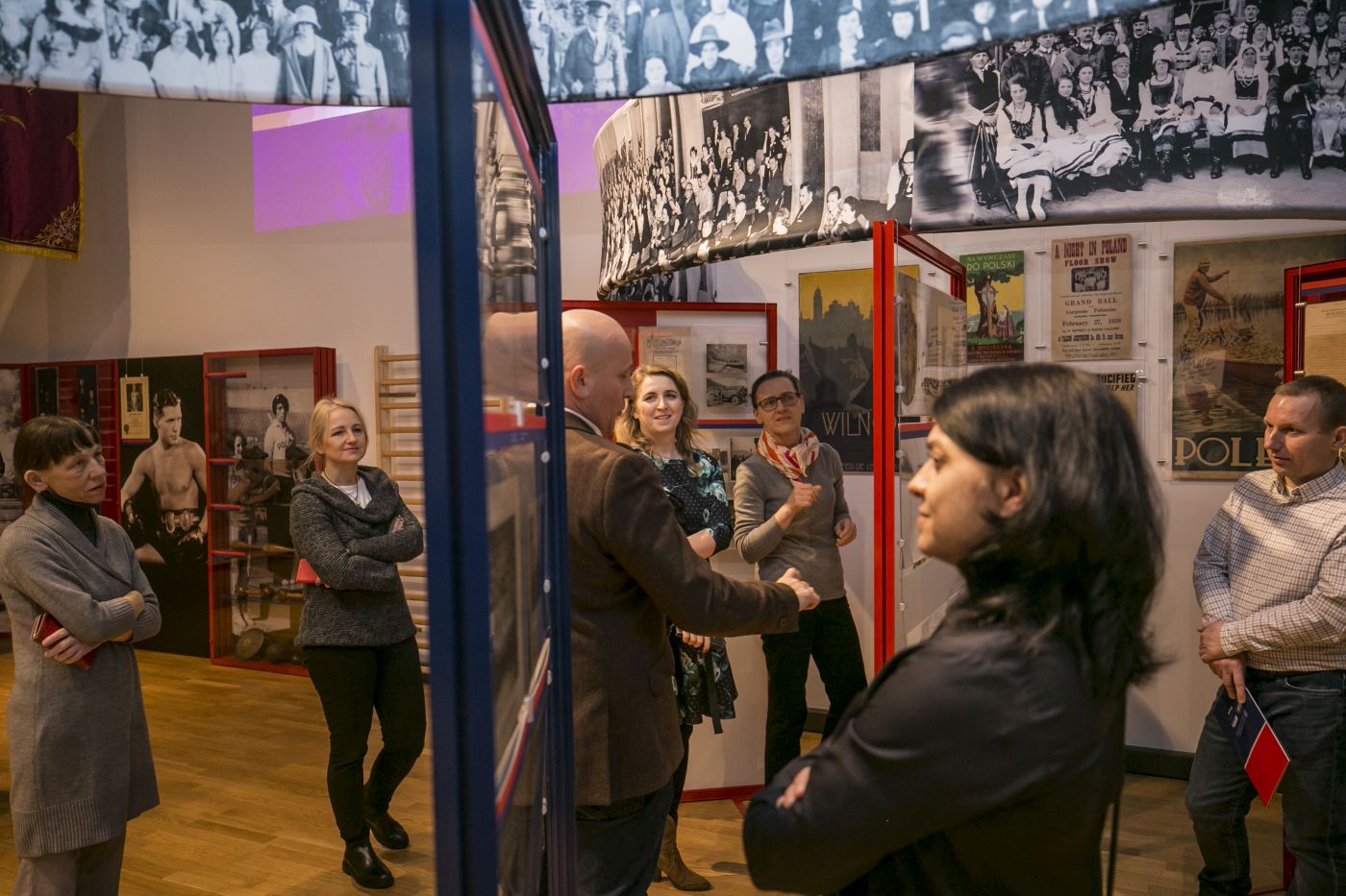 Podczas seminarium naczelnik Wydziału Zarządzania Zasobem Archiwalnym, a zarazem kurator wystawy, Grzegorz Trzyna oprowadził uczestników po wystawie, a także omówił działalność Sokolstwa Polskiego w Ameryce, w szczególności jego wkład w odzyskanie przez Polskę niepodległości w 1918 r., oraz ideę przyświecającą założycielom Sokolstwa Polskiego w Ameryce – łączenia kultu sprawności fizycznej z wartościami patriotycznymi.