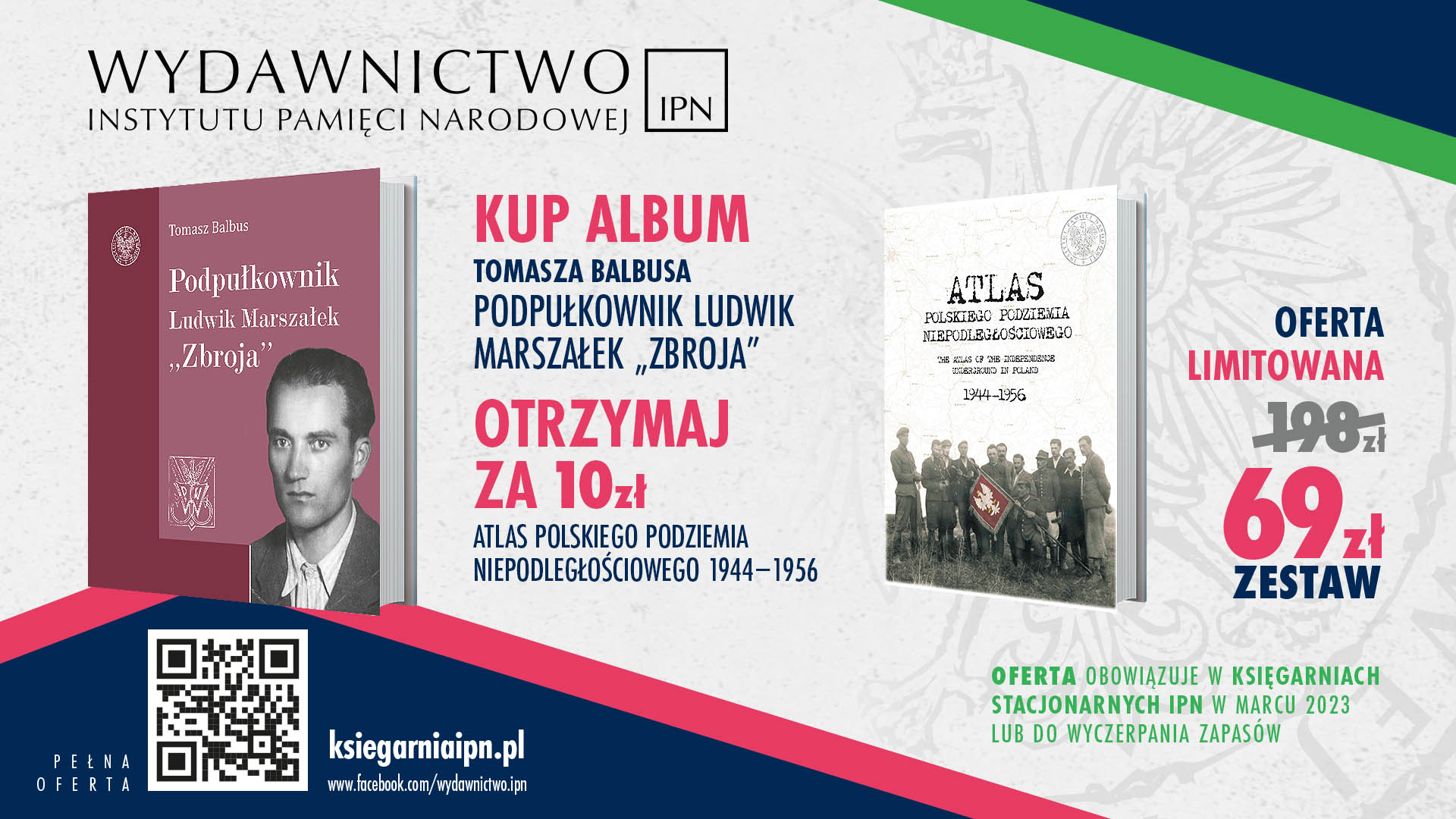Przez cały marzec w księgarniach stacjonarnych IPN przy zakupie nowości: Tomasz Balbus, Pułkownik Ludwik Marszałek „Zbroja” można otrzymać Atlas polskiego podziemia niepodległościowego 1944–1956 za jedyne 10 zł!