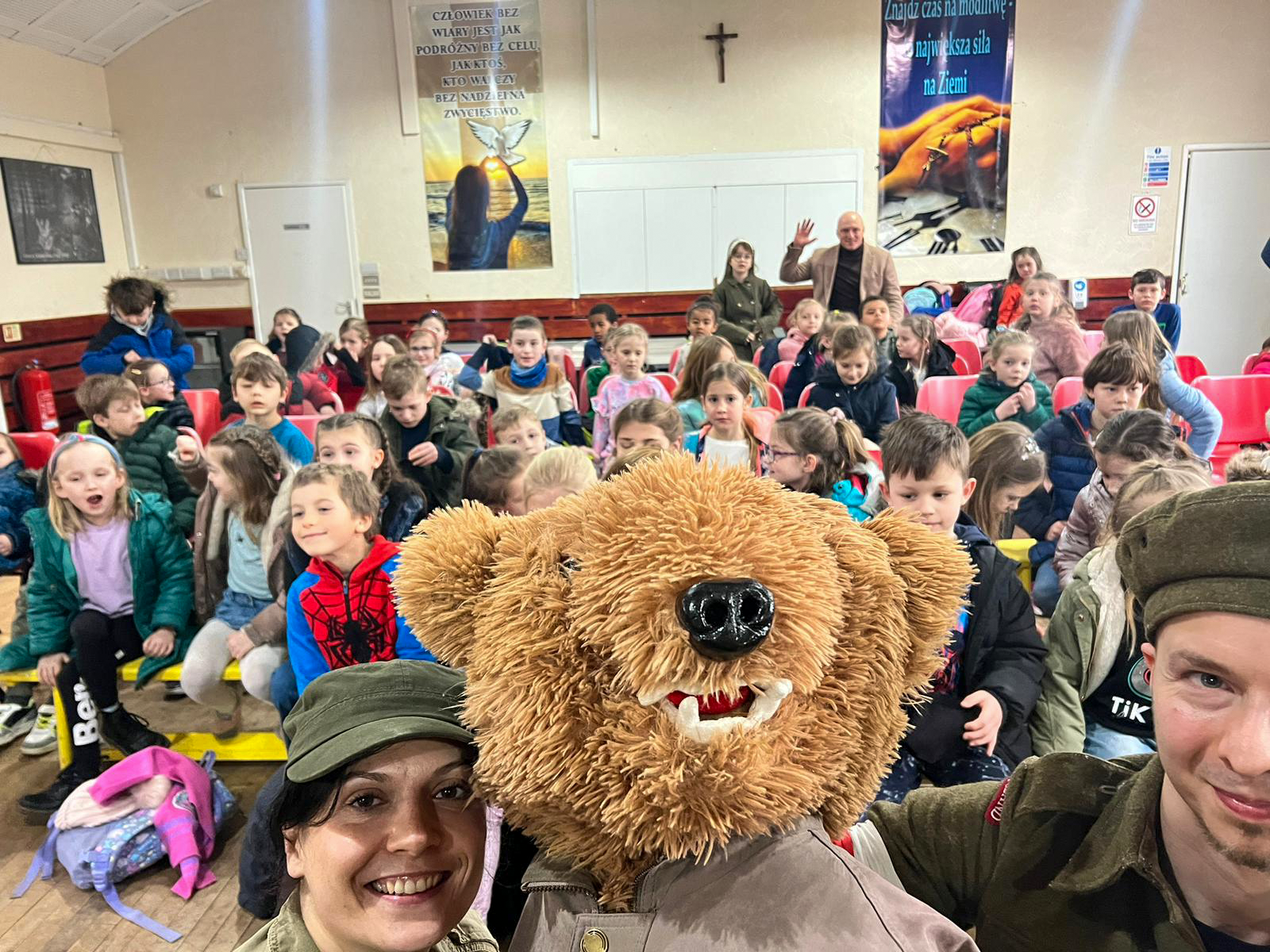 W niedzielę odbyły się także dwa spotkania otwarte w sali przy Polskiej Parafii Rzymskokatolickiej w Swindon, gdzie również wystawiono spektakl o misiu z Armii Andersa. Tego dnia przedstawienia obejrzało ok. 230 osób.