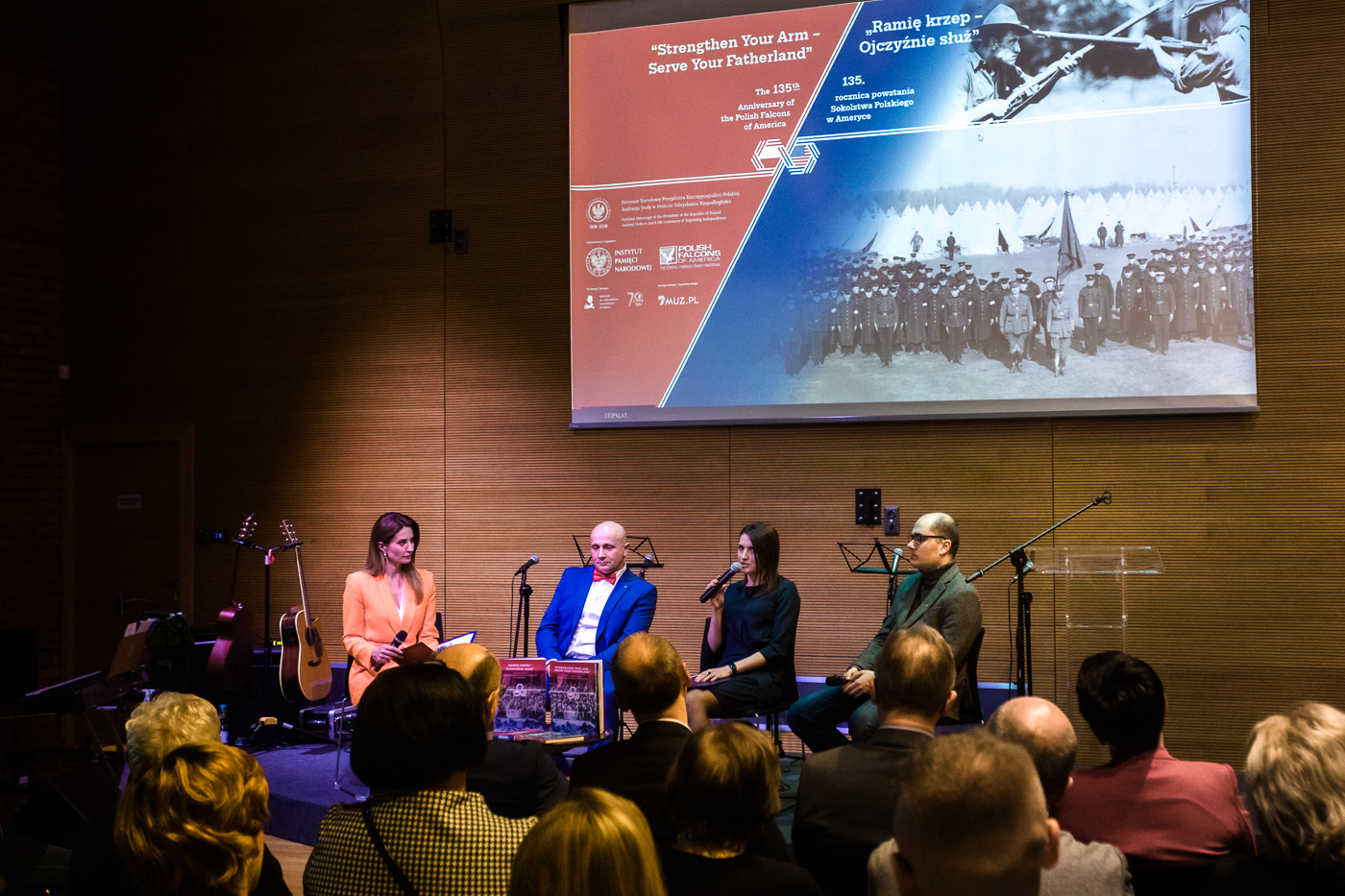 W drugiej części spotkania pracownicy AIPN, a zarazem współautorzy albumu – dr Justyna Staroń i Krzysztof Pawluczuk oraz kurator wystawy Grzegorz Trzyna opowiedzieli o wyzwaniach związanych z przygotowywaniem przez archiwistów wystawy muzealnej, o bogactwie źródeł wykorzystanych podczas pracy nad publikacją, a także o pochodzeniu nazwy „Sokolstwo” i roli kobiet w Związku Sokolstwa Polskiego w Ameryce.