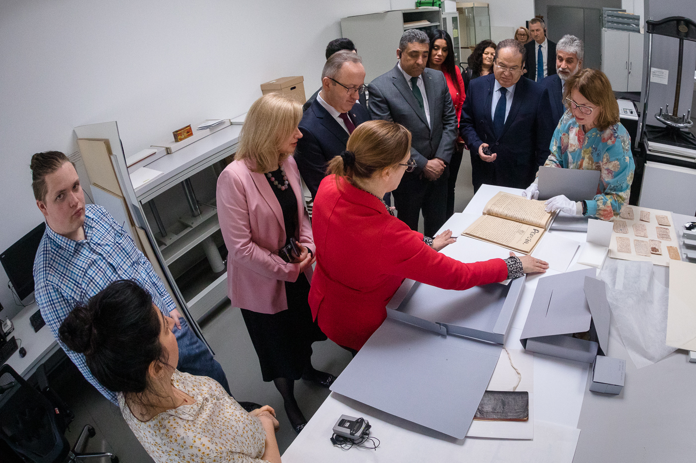 Kolejną częścią spotkania była wizyta w Archiwum IPN, gdzie dyrektor Marzena Kruk opowiedziała, w jaki sposób kształtował się zasób i organizacja pracy archiwistów, jak wygląda zabezpieczanie, przechowywanie i konserwacja zbiorów. Goście mieli także możliwość obejrzenia wybranych archiwaliów związanych z Palestyną.