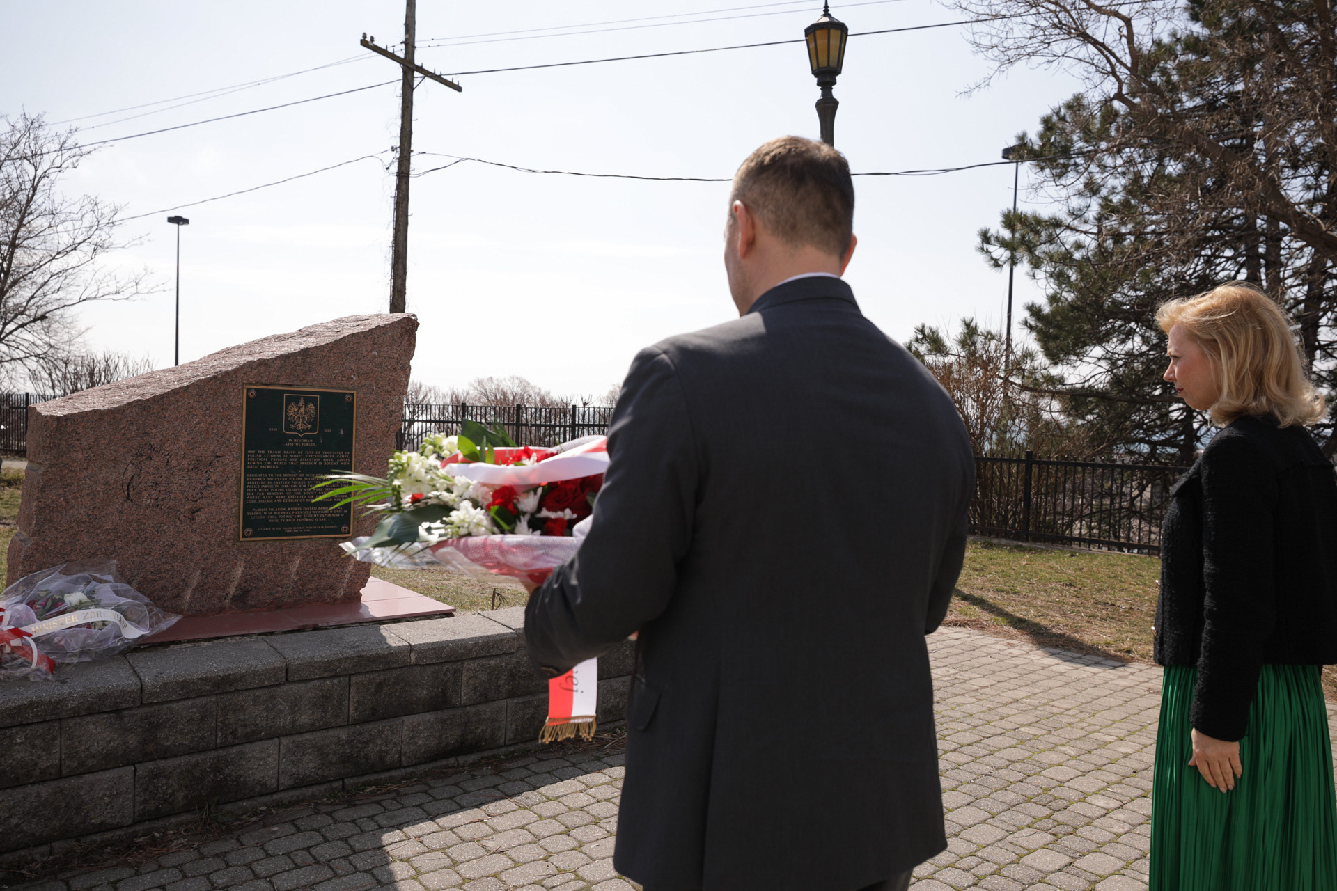 Prezes IPN dr Karol Nawrocki w towarzystwie konsul generalnej Magdaleny Pszczółkowskiej złożył kwiaty pod pomnikiem katyńskim, wzniesionym z inicjatywy Polonii pierwszym na świecie pomnikiem upamiętniającym ofiary zbrodni katyńskiej, który stanął w miejscu publicznym na terenie miejskim. Złożono także kwiaty pod tablicą sybiracką i tablicą smoleńską.
