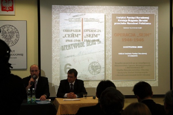 W siedzibie Instytutu Pamięci Narodowej Oddział w Rzeszowie, przy ulicy Słowackiego 18, odbyła się 14 stycznia prezentacja publikacji „Operacja »Sejm« 1944–1946” (seria „Polska i Ukraina w latach trzydziestych – czterdziestych XX wieku”, t. 6). W spotkaniu udział wzięła reprezentacja polsko-ukraińskiego zespołu redakcyjnego, w skład którego wchodzą: Jerzy Bednarek, Serhij Bohunow, Zuzanna Gajowniczek, Serhij Kokin, Petro Kułakowski, Marcin Majewski, Piotr Mirecki, Zbigniew Nawrocki, Jurij Szapował, Jędrzej Tucholski, Wiktor Tychomyrow.