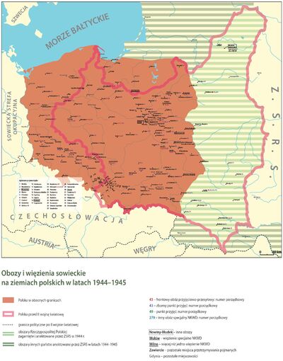 Większość obozów, które były instalowane na ziemiach polskich w latach 1944-1945 miała charakter placówek „wędrujących”, określanych też mianem „lotnych obozów koncentracyjnych”, bo wędrowały wraz z przesuwającym się frontem. Sowieci chętnie korzystali też z infrastruktury obozowej stworzonej przez III Rzeszę, zaadaptowali do swoich celów byłe niemieckie obozy koncentracyjne w Oświęcimiu i Brzezince (KL Auschwitz-Birkenau), tzw. Gęsiówkę w Warszawie i obóz na Majdanku. Również więzienie przy ul. Montelupich w Krakowie, pełniące funkcję więzienia karno-śledczego NKWD, stało się miejscem, z którego wywożono aresztowanych czy internowanych żołnierzy AK m.in. do obozów sowieckich w Donbasie, a także do Turkmeńskiej SRS.