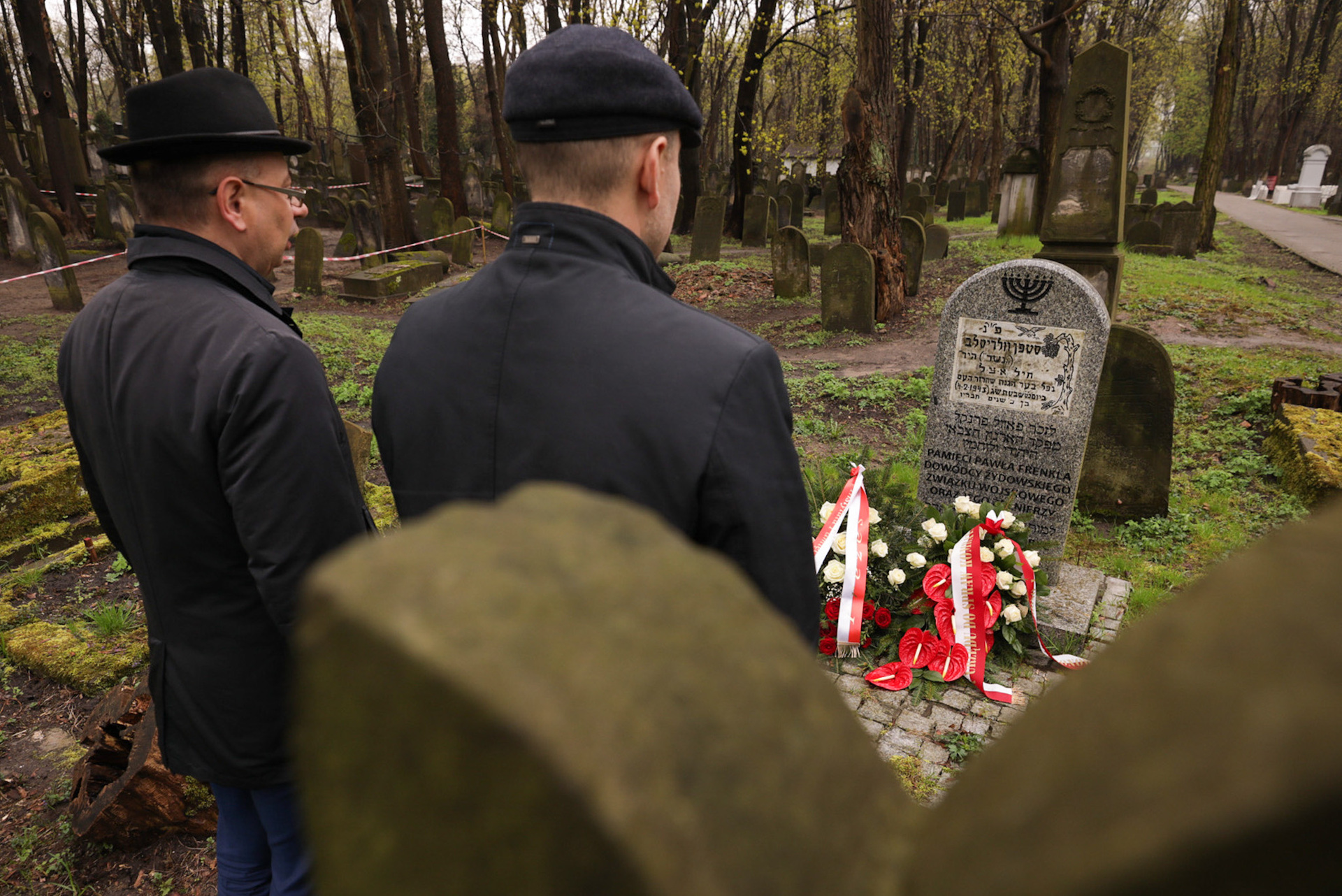 Wcześniej, w godzinach porannych prezes Instytutu Pamięci Narodowej dr Karol Nawrocki i zastępca prezesa – dr Mateusz Szpytma oddali hołd jednemu z przywódców powstania w getcie warszawskim, dowodzącemu Żydowskim Związkiem Wojskowym Pawłowi Frenkelowi, składając wieniec na jego symbolicznym grobie na Cmentarzu Żydowskim na warszawskiej Woli.