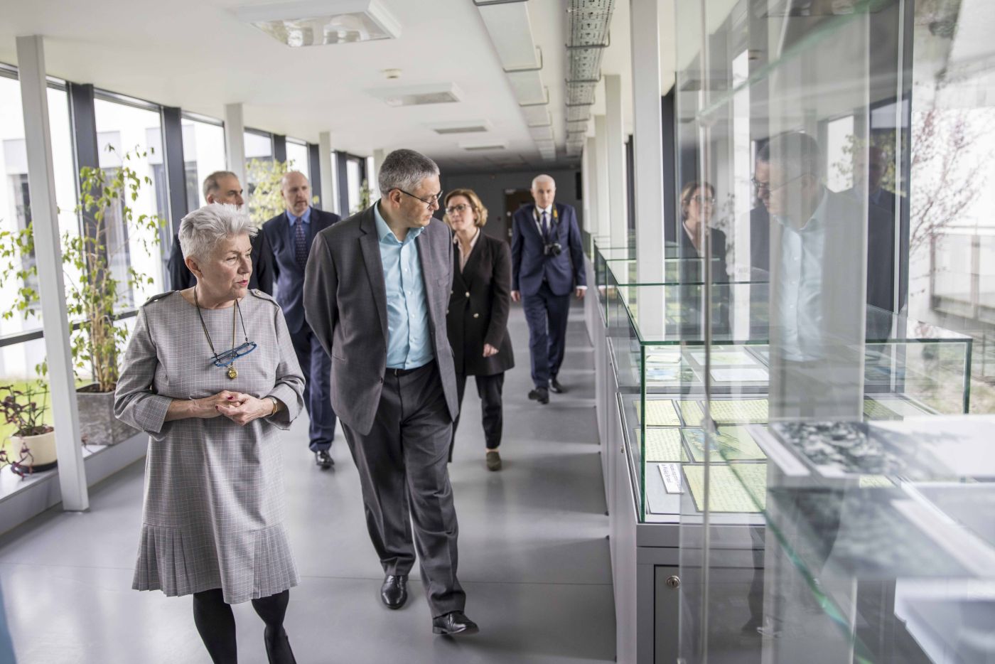 Goście zwiedzili również magazyny i pracownie Archiwum, w których mogli zobaczyć, w jaki sposób zabezpieczane i przechowywane są dokumenty z zasobu Instytutu. Zainteresowaniem cieszyła się prezentacja funkcjonalności rotomatu do przechowywania kart kartotecznych oraz możliwości wykorzystania w pracy archiwum videokomparatora.