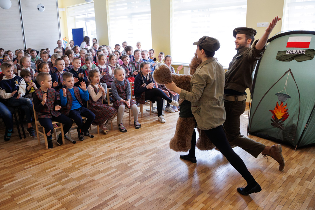 Przedstawienie zostało przygotowane przez profesjonalnych aktorów, a inscenizacja przystosowana jest do percepcji najmłodszych. Aktorzy w przystępny sposób opowiadają o szlaku armii generała Andersa, z którą wędrował oswojony niedźwiedź brunatny Wojtek. Zależy nam, aby przez taką formę edukacji dzieci lepiej przyswajały polską historię. Teatr stanowi ważny walor edukacyjny i kulturalny, ale również integracyjny, gdyż dzieci potrzebują projektów dostosowanych do ich wieku. Szczególnie gdy mamy czynny udział dzieci w przedstawieniu – poprzez śpiew i pytania, które zadają i na które odpowiadają. Jesteśmy przekonani, że takie pozytywne emocje, wzbudzone u dzieci w tak młodym wieku, rozwijają na przyszłość pasje poznawcze, teatralne, a może nawet historyczne. Śpiewane podczas spektaklu piosenki zapadają w ucho, scenografia się zmienia, aktorzy angażują dzieci do wspólnej zabawy. Aby miś Wojtek został w ich pamięci na dłużej i towarzyszył im każdego dnia, dzieci otrzymały okolicznościowe maskotki.