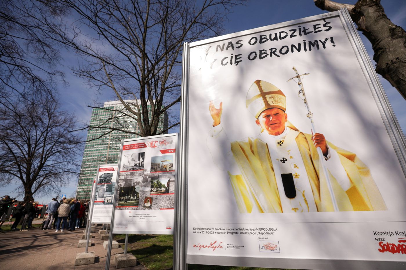 – Nie przypuszczaliśmy i sądziliśmy, że ta wystawa będzie miała tak burzliwą i trudną historię. Równo miesiąc temu w tym samym miejscu otwieraliśmy tę wystawę pod pięknym zawołaniem „Ty nas obudziłeś, my Cię obronimy” . (...) Dzisiaj, spotykamy się aby otworzyć ją po raz trzeci. Jeśli będzie potrzeba otworzymy ją kolejny raz. (...) Ojciec Święty jest dla nas najważniejszą osobą. Nie byłoby dzisiaj NSZZ „Solidarność” gdyby nie Jan Paweł II