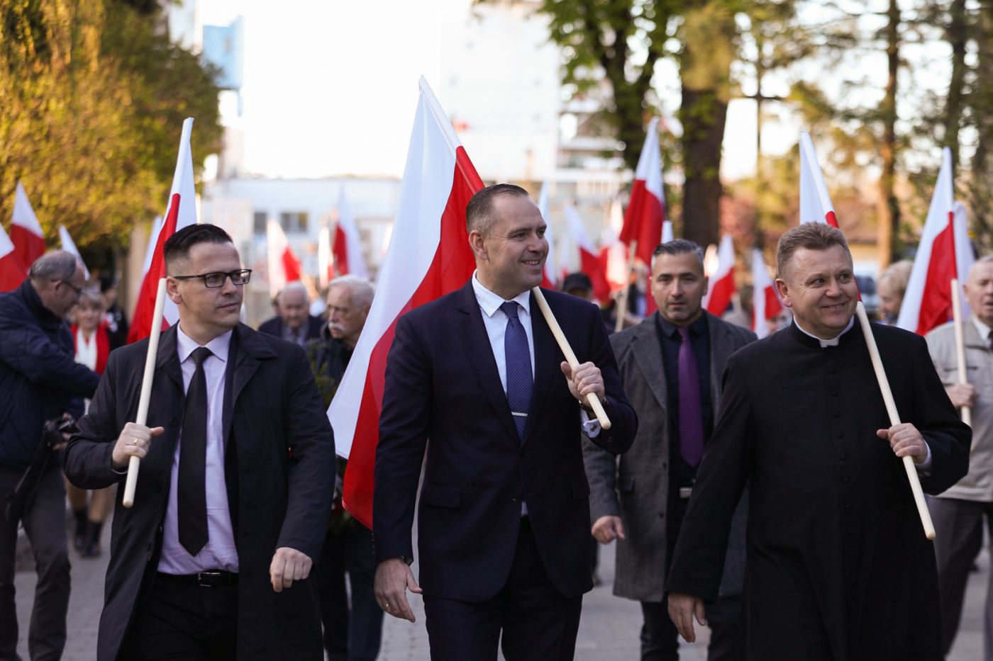 – Flaga polska ma w sobie czystość bieli a więc czystość intencji narodu polskiego w budowaniu swojego dobrobytu, w budowaniu swojej wolności i budowaniu swojej suwerenności. Narodu, który nie potrzebuje jak narodowi socjaliści – lebensraumu (z niem. nowej przestrzeni życiowej) – kolejnych wojen i napadów. Narodu, który w swoich czystych intencjach nie potrzebuje, jak Sowieci, a dziś Federacja Rosyjska, kolejnych bolszewickich rewolucji i wojen. Narodu, który chce budować swoją niepodległość, suwerenność i wolność w oparciu o wyznawane przez nas wszystkich wartości, do których mamy prawo. Ale nasza piękna flaga to także czerwień. Czerwień to cierpienie, cierpienie szczególnie w wieku XX, za walkę o te wartości. I właśnie dziś w pięknej biało-czerwonej fladze odbija się życiorys błogosławionego księdza Góreckiego, czystość intencji i gotowość do cierpienia
