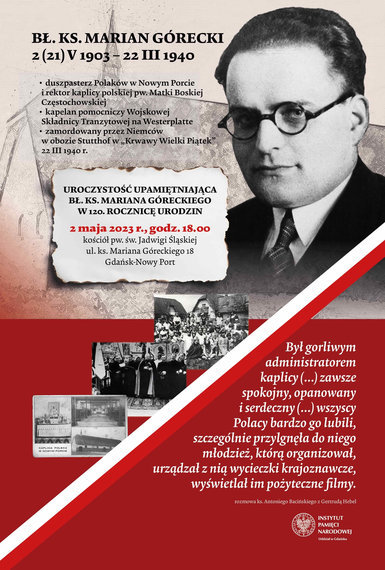 – Chciałbym przypomnieć dziś Państwu, że w okresie Wolnego Miasta Gdańska, który z wolnością dla Polaków nie miał nic wspólnego, bo był nie więcej niż laboratorium niemieckiego nazizmu, Polacy byli w mniejszości i bez takich ludzi jak ks. Marian Górecki nie bylibyśmy dzisiaj wolnym i niepodległym krajem.