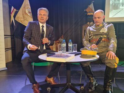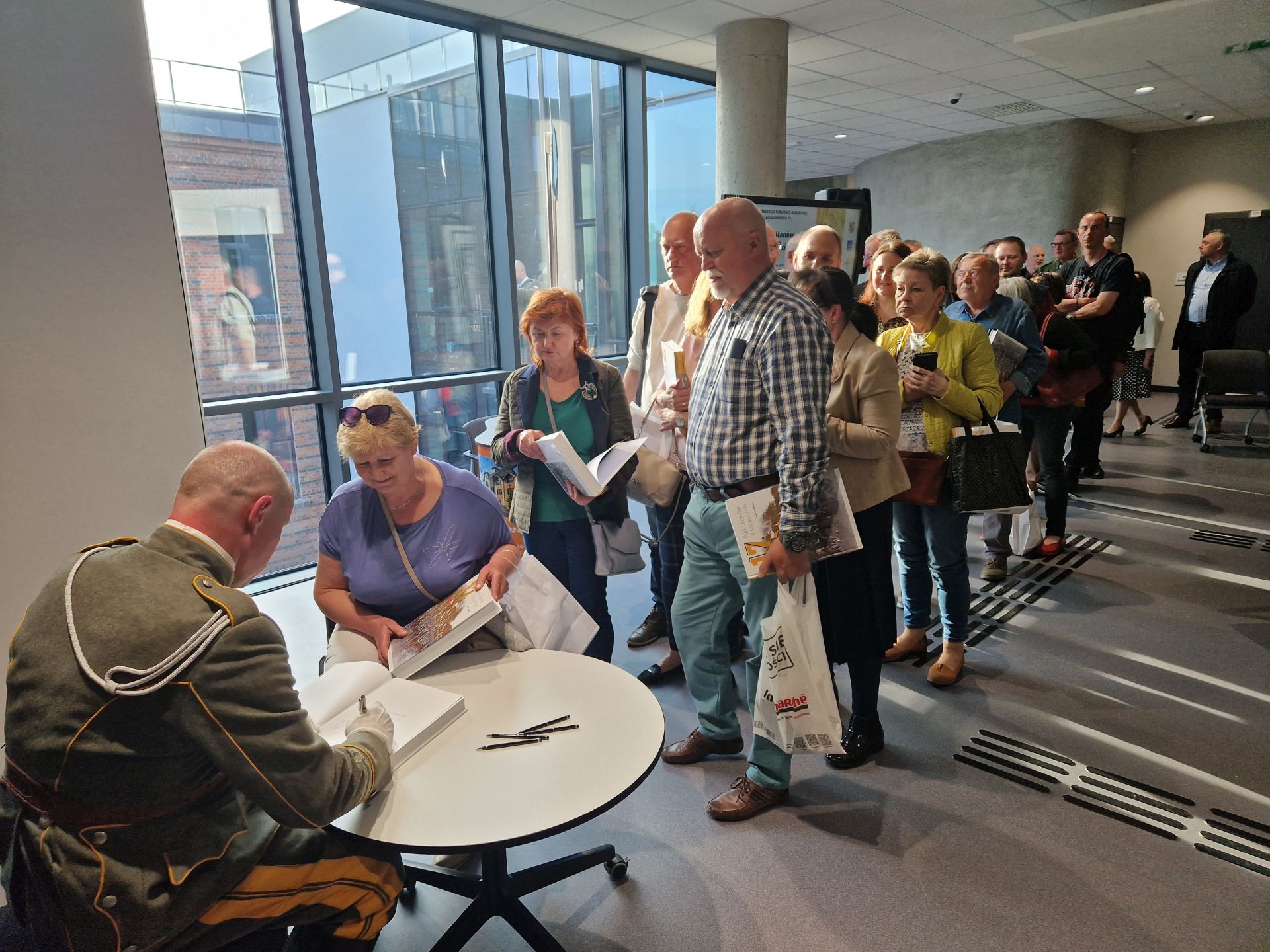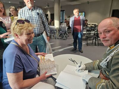 Zgromadzeni w bibliotece wysłuchali interesującej rozmowy z Autorem publikacji Pawłem Kochańskim, którą przeprowadził dr Adam Pleskaczyński. Spotkanie zakończyło składanie autografów przez Autora dla osób, które chciały posiadać publikację z jego wpisem.