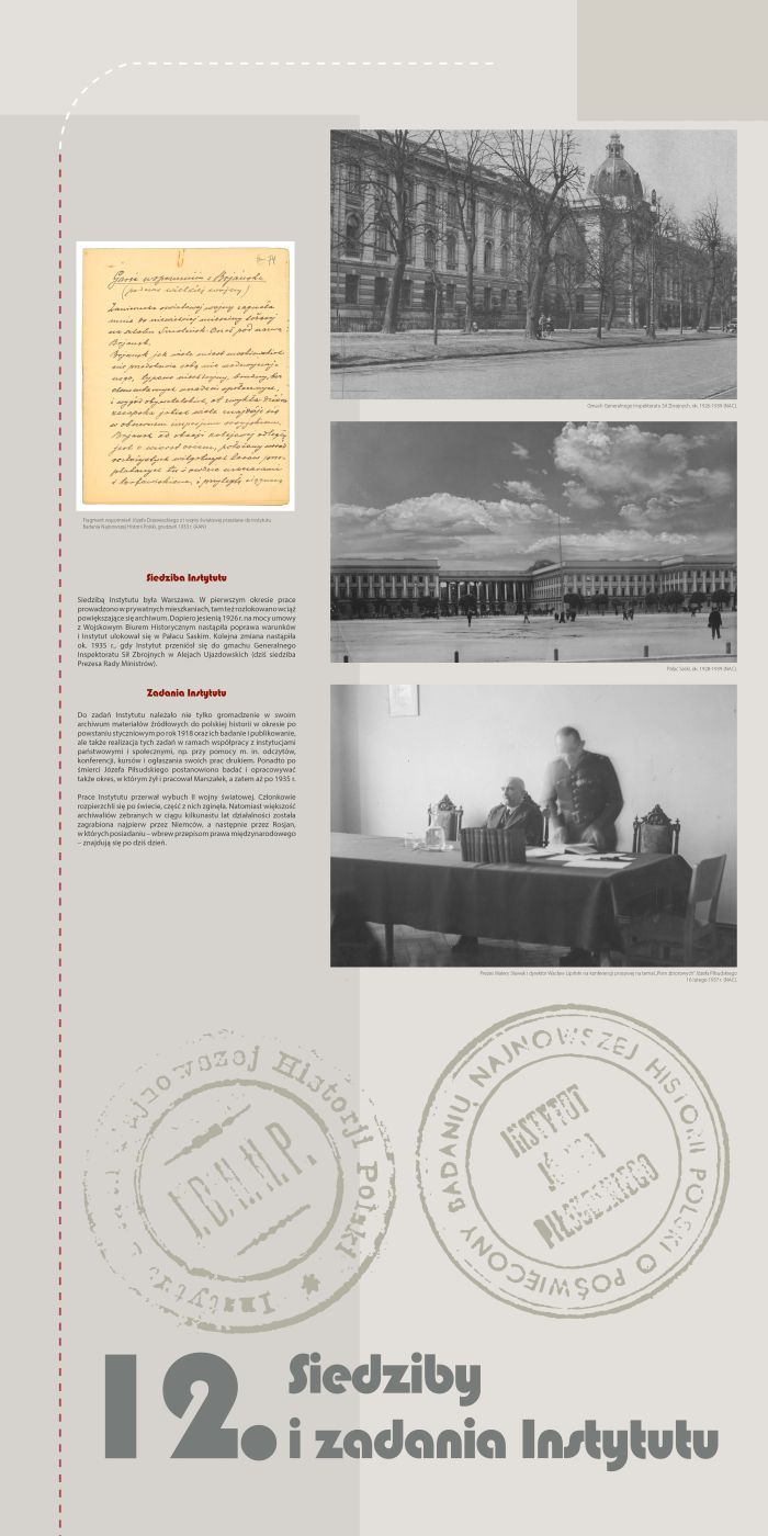 – Chodzi tu o wytworzenie wielkiego archiwum, w którym by były zebrane dokumenty, wspomnienia, druki, odezwy, rozkazy, fotografie, listy a nawet uporządkowane notatki z okresów naszej pracy. Pożądane są materiały, świadczące nie tylko o naszym wysiłku, ale i o trudnościach, jakie nam czyniono zarówno ze strony obcych rządów, jak i własnego społeczeństwa – podkreślał Walery Sławek, który był główną osobą odpowiedzialną za tworzenie Instytutu.