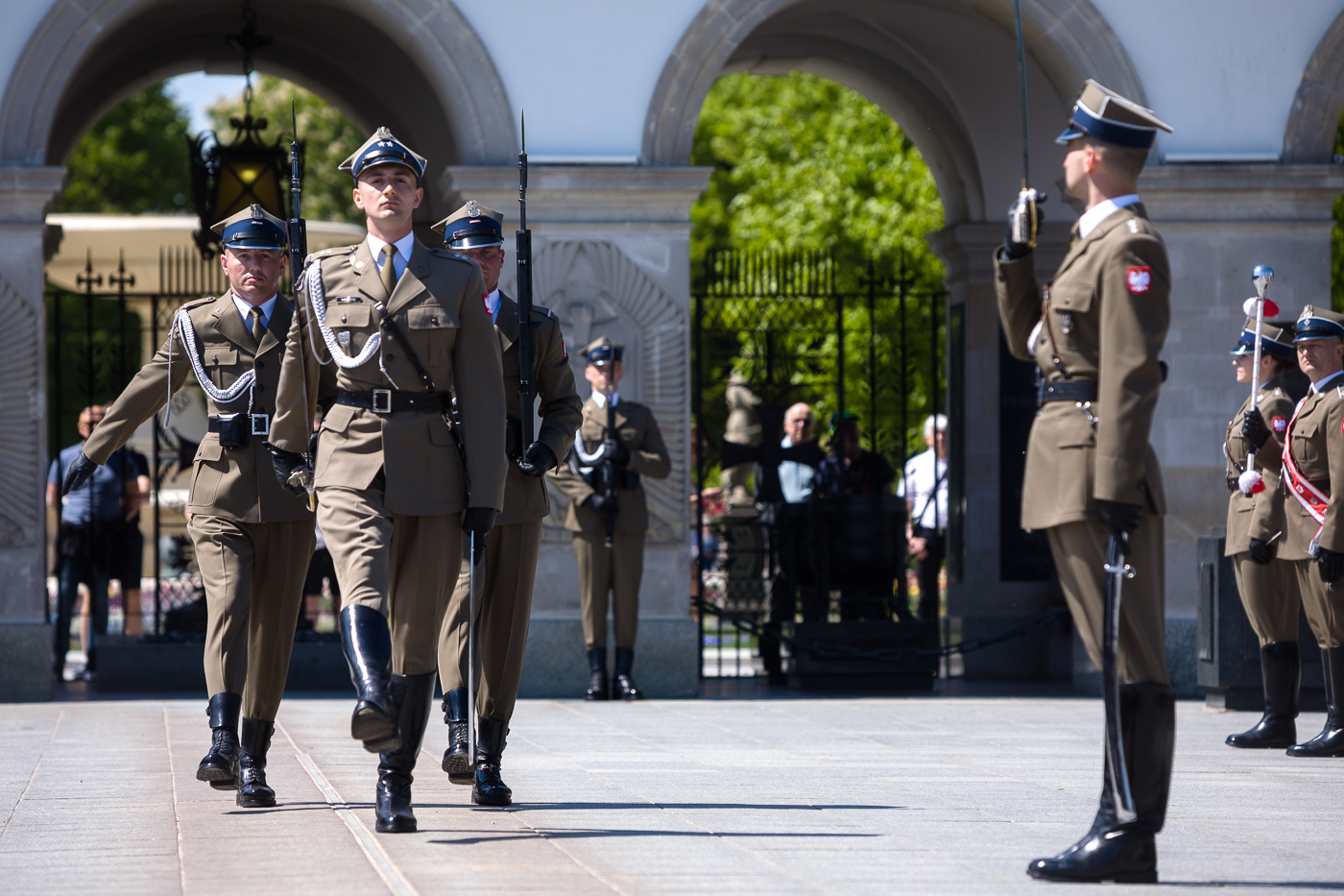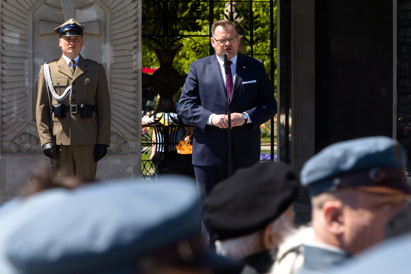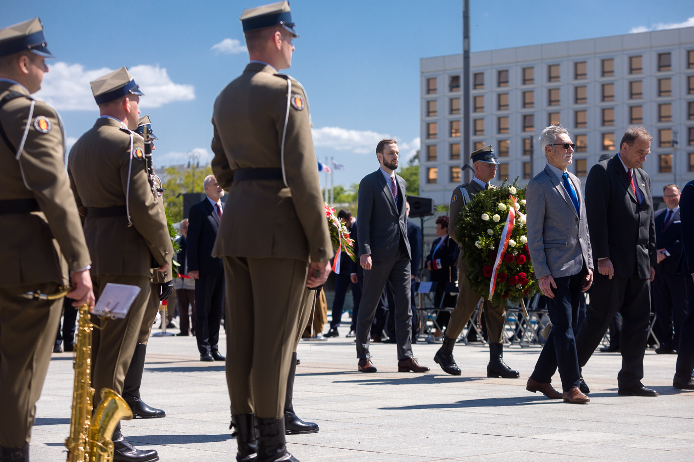 Następnie na placu Marszałka Józefa Piłsudskiego odczytano Apel Pamięci i złożono kwiaty przy Grobie Nieznanego Żołnierza i pod pomnikiem Marszałka stojącym w sąsiedztwie Dowództwa Garnizonu Warszawa.
