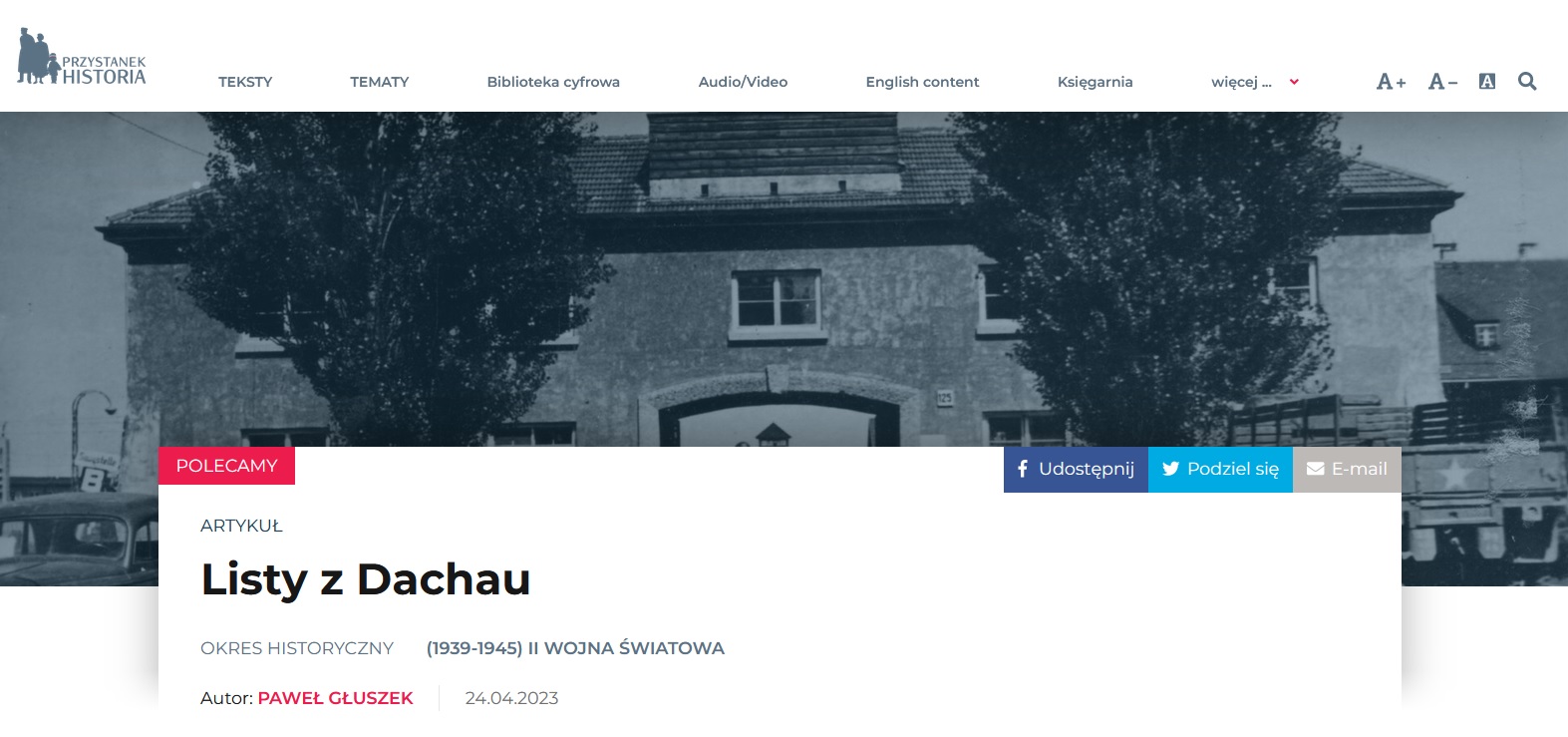 Ponadto w 78. odc. zachęcamy do skorzystania z najnowszej oferty wydawniczej IPN. Książka pt. „Pisarze Niepodległości. Szkice o ludziach i dziełach” autora: Marek Klecel jest już dostępna w naszych księgarniach. Polecamy również lekturę artykułu Listy z Dachau, który jest dostępny w portalu przystanekhistoria.pl.