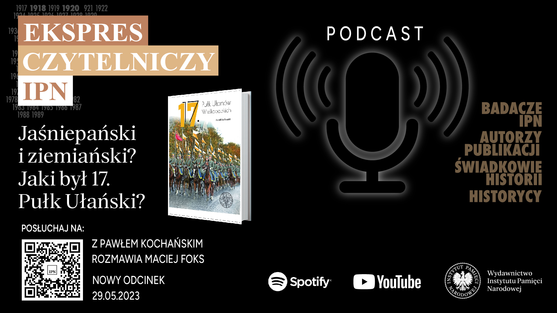 Jak wyglądał szlak bojowy 17. Pułku Ułanów Wielkopolskich? Kto był najlepszym ułanem w jednostce? Jakie były oficjalne święta i nieoficjalne obyczaje pułkowe? Czy w korpusie oficerskim byli przedstawiciele mniejszości narodowych? Czy wśród żołnierzy wyklętych znajdziemy nazwiska ułanów wielkopolskich?  Czy ułan był dobrą partią na narzeczonego lub męża? Która jednostka kultywuje dziś tradycje ułanów wielkopolskich? To tylko niektóre kwestie, które poruszamy w programie. Gościem audycji jest Paweł Kochański z Oddziału Instytutu Pamięci Narodowej w Poznaniu, autor książki „17. Pułk Ułanów Wielkopolskich”.