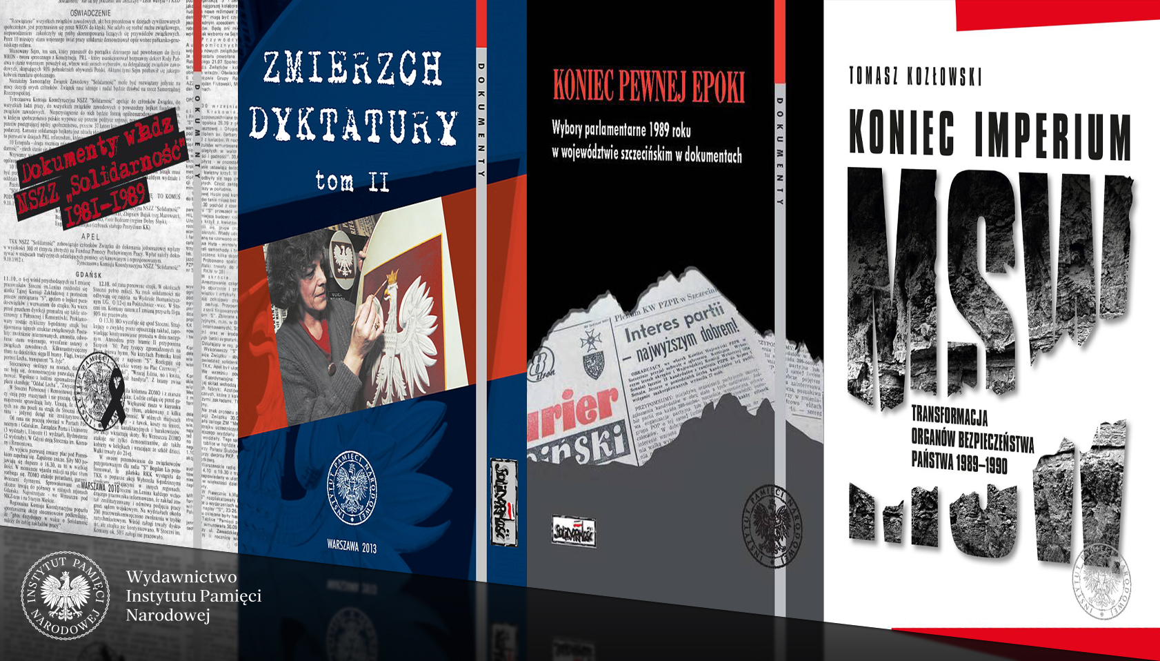 Zachęcamy do odwiedzenia zakładki e-booki i pobrania publikacji, związanych z wydarzeniami lat 1989-1990 w Polsce: Zmierzch dyktatury. Polska lat 1986–1989 w świetle dokumentów, t. 1 (lipiec 1986 – maj 1989), wybór, wstęp i opracowanie Antoni Dudek Zmierzch dyktatury. Polska lat 1986–1989 w świetle dokumentów, t. 2 (czerwiec–grudzień 1989), wybór, wstęp i opracowanie Antoni Dudek Koniec pewnej epoki. Wybory parlamentarne 1989 roku w województwie szczecińskim w dokumentach, wstęp, wybór i opracowanie Artur Kubaj Dokumenty władz NSZZ „Solidarność” 1981–1989, wstęp, wybór i opracowanie Jan Olaszek Tomasz Kozłowski, Koniec imperium MSW. Transformacja organów bezpieczeństwa państwa 1989–1990