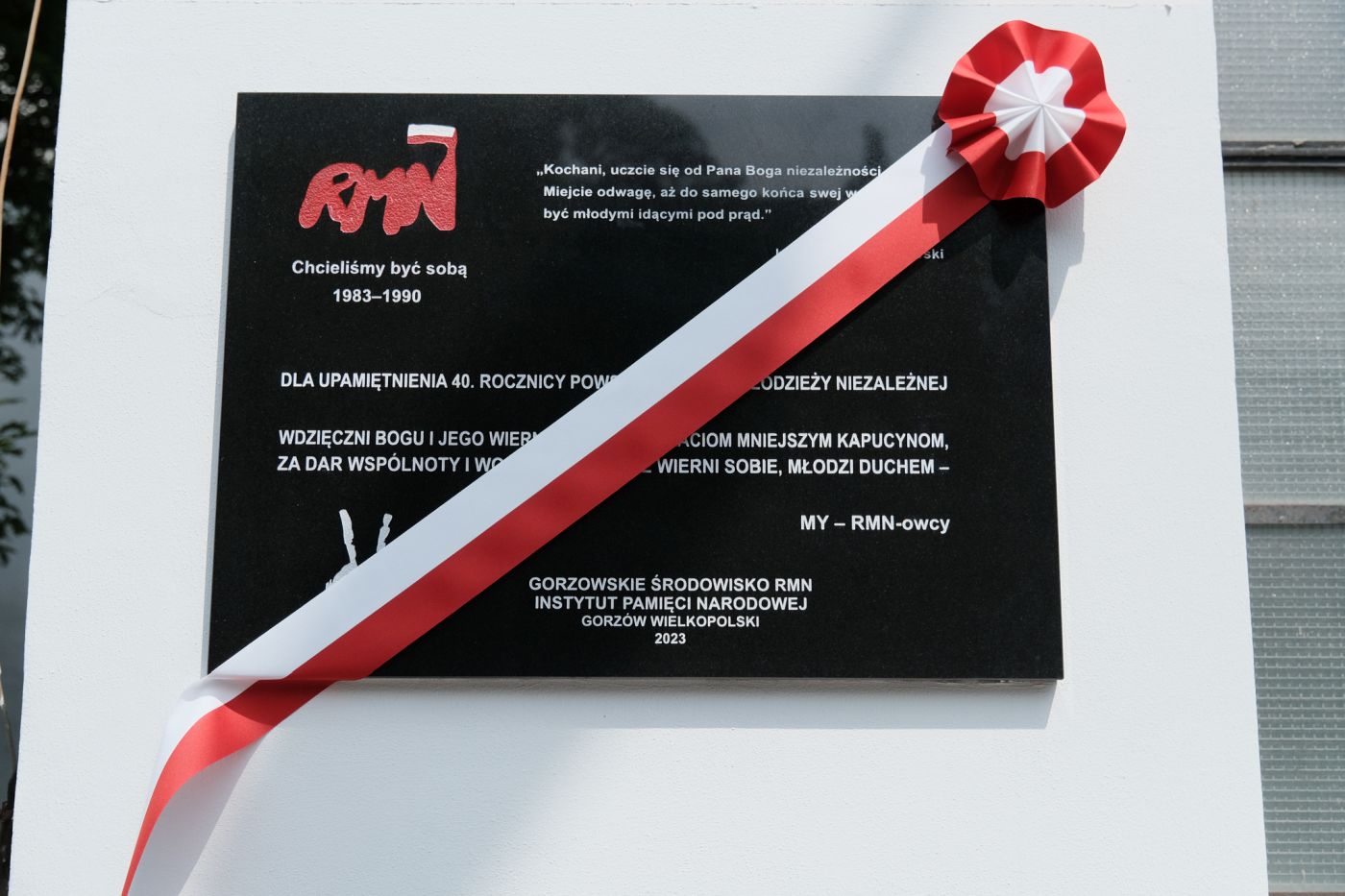 Dla uczczenia 40. rocznicy powstania Ruchu Młodzieży Niezależnej w Gorzowie Wielkopolskim 10 czerwca w południe odsłonięta została tablica pamiątkowa. Uroczystość miała miejsce przy kościele pw. św. Antoniego Padewskiego i św. Stanisława Kostki w Gorzowie Wielkopolskim, gdzie w latach 80. gromadzili się gorzowscy opozycjoniści. W uroczystości z udziałem przedstawicieli władz państwowych i samorządowych, m.in. sekretarza stanu, pełnomocnika rządu ds. rozwoju Tomasza Rzymkowskiego oraz wojewody lubuskiego Władysława Dajczaka, uczestniczył zastępca prezesa Instytutu Pamięci Narodowej dr hab. Karol Polejowski. Uroczystość poprzedziła Msza święta.