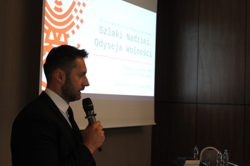 Biuro Współpracy Międzynarodowej IPN omówiło swoją działalność w ramach projektu „Szlaki Nadziei. Odyseja Wolności” oraz reagowania na dyfamacje jako przykład prowadzenia efektywnej polityki pamięci. Prelegentami byli dyrektor BWM Agnieszka Jędrzak oraz naczelnik w BWM dr Mateusz Marek.