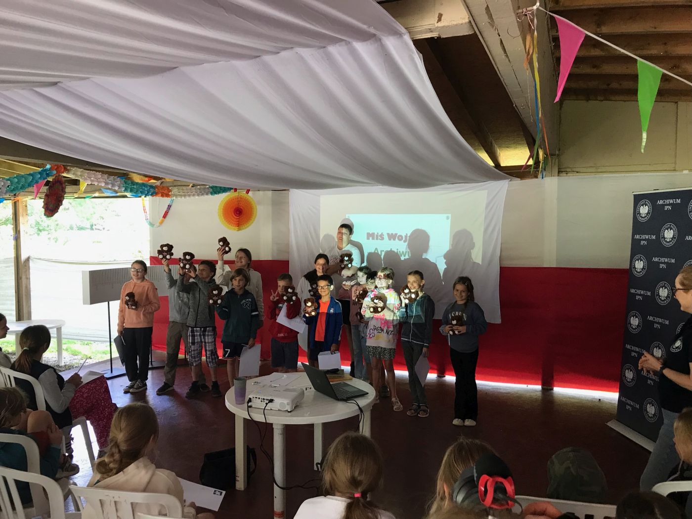 12 lipca odbyły się warsztaty dla dzieci w wieku 6-10 lat zatytułowane „Miś Wojtek w Archiwum IPN”. Podczas zajęć zostały zaprezentowane kopie dokumentów z naszego zasobu, przedstawiające Misia Wojtka w okresie II wojny światowej, podczas służby w 22. Kompanii Zaopatrywania Artylerii. Dzieci obejrzały także przygotowany przez Instytut film „Miś Wojtek – co by było gdyby zwierzęta mówiły”. Film był punktem wyjścia do rozmowy o wojennych i powojennych losach Misia Wojtka, w tym o jego udziale w walkach pod Monte Cassino oraz o wielkiej przyjaźni z żołnierzami 22. Kompanii Zaopatrywania Artylerii 2. Korpusu Polskiego, dowodzonego przez gen. Władysława Andersa. Zadaniem dzieci było napisanie listu do Misia Wojtka. Później chętni odczytali przygotowane listy, w których pisali o sympatii i wdzięczności dla Misia Wojtka za jego walkę o Polskę. Na zakończenie warsztatów dzieci wzięły udział w krótkim quizie wiedzy o Misiu Wojtku. Zwycięzców nagrodziliśmy materiałami promocyjnymi oraz grami edukacyjnymi IPN.