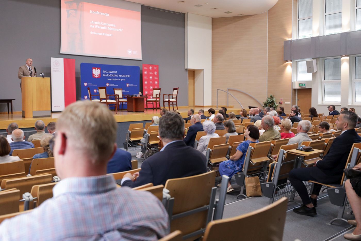 Zebrani wysłuchali następnie dwóch referatów. Dr Krzysztof Kierski z Delegatury IPN w Olsztynie omówił działania Armii Czerwonej na Warmii i Mazurach, W swoim wystąpieniu przypomniał, że do jesieni 1944 r. Warmia i Mazury właściwie nie ucierpiały w wyniku działań wojennych. Gehenna tych ziem rozpoczęła się dopiero w październiku 1944 r., kiedy to nacierające ze wschodu wojska sowieckie przekroczyły granicę Prus Wschodnich. Kolejna ofensywa na te tereny rozpoczęła się zimą 1945 r. W ramach operacji wschodniopruskiej Armia Czerwona 13 stycznia rozpoczęła działania na kierunku północno-wschodnim Prus Wschodnich, gdzie po kilku dniach zaciętych walk przełamała obronę niemiecką i 22 stycznia zdobyła Olsztyn.