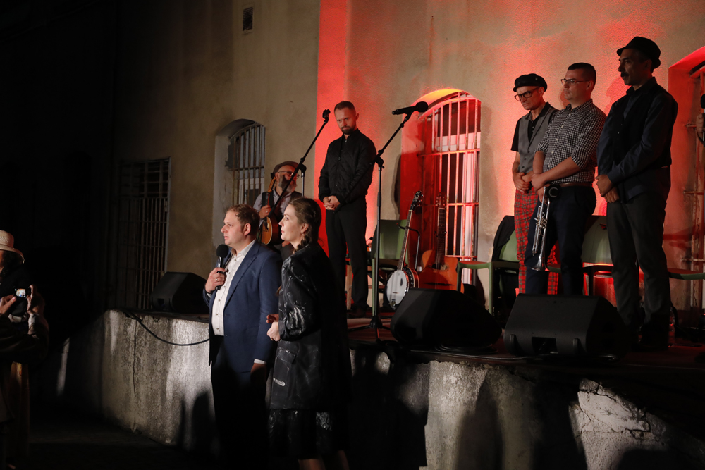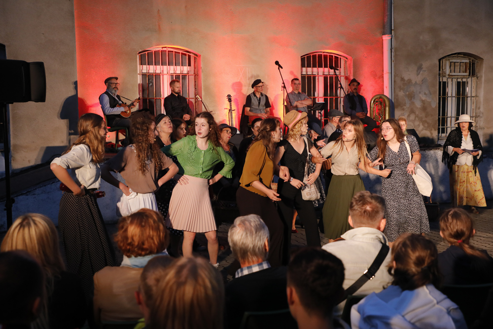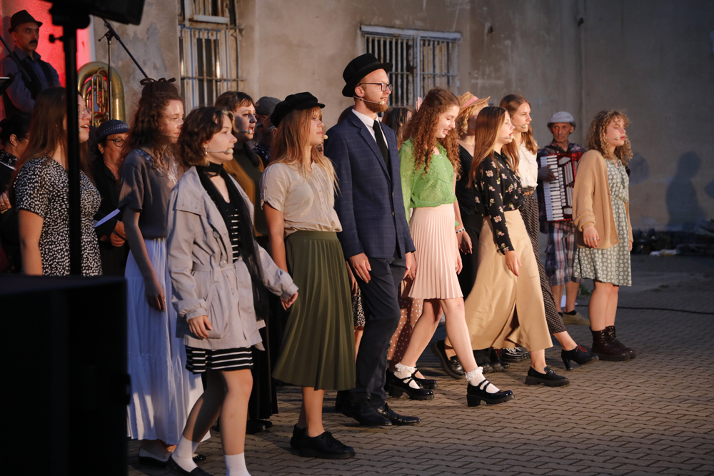 Kapela Henryka Małolepszego, uczestnicy VIII Letnich Warsztatów Teatru Piosenki w Tarczynie (40 osób od 7 do 24 roku życia) i zespół ludowy Tarczynianie w roli ludności Mokotowa.