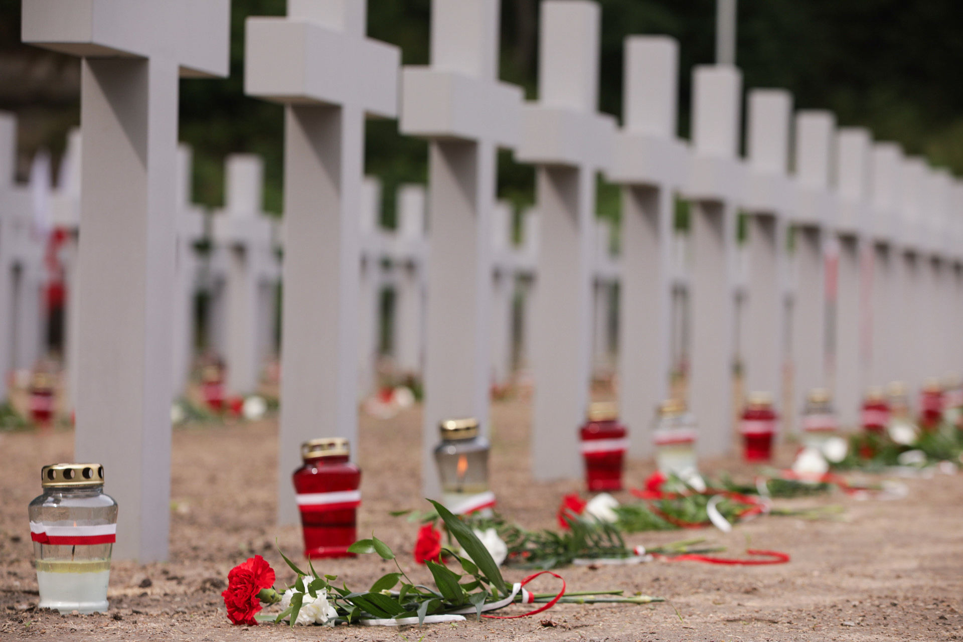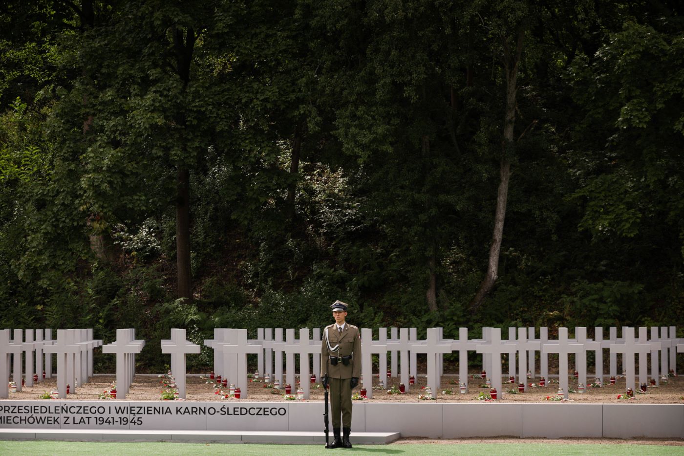 Miejsce to stało się miejscem masowych zbrodni, tej pierwszej z 31 maja 1943 roku i tej ostatniej sprzed 79 lat. Te masowe egzekucje wyścieliły teren Fortu III w Pomiechówku szczątkami, krwią i duchem cierpienia. My jesteśmy dziś tu po to, aby pokazać, że pamiętamy i mamy świadomość, że naród to nie tylko ci, którzy żyją w ramach granic dzisiejszej wolnej, niepodległej Rzeczpospolitej, ale to także ci, którzy są poza granicami, ci, którzy byli przed nami i ci, którzy nadejdą po nas. Dlatego stawiamy dziś ślad pamięci, ślad pamięci, który jest dowodem na zwycięstwo dobra pamięci nad niepamięcią i amnezją, zwycięstwa dobra chrześcijańskiego i ceremonialnego pochówku nad barbarzyńskim ukrywaniem i porzucaniem zwłok – powiedział dr Nawrocki.