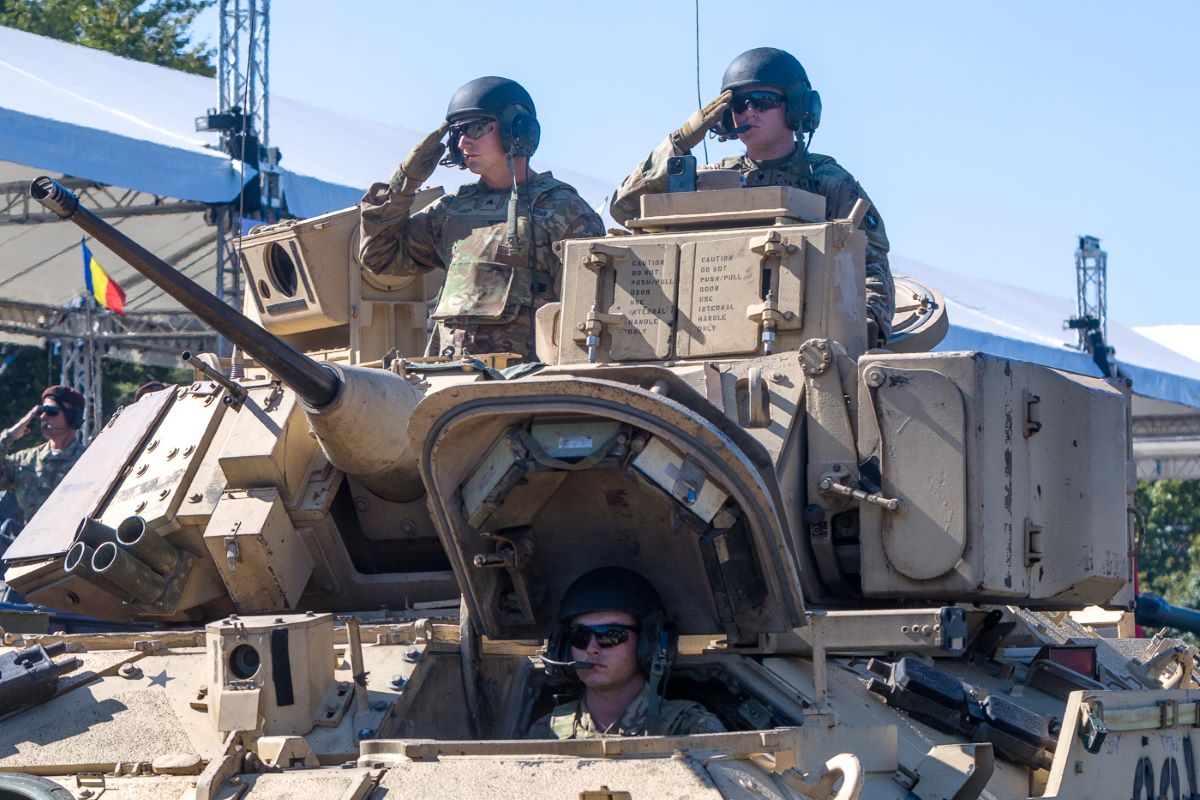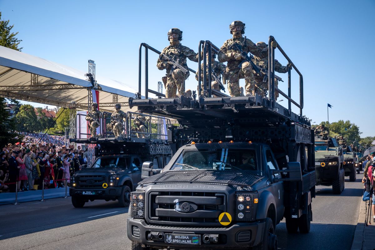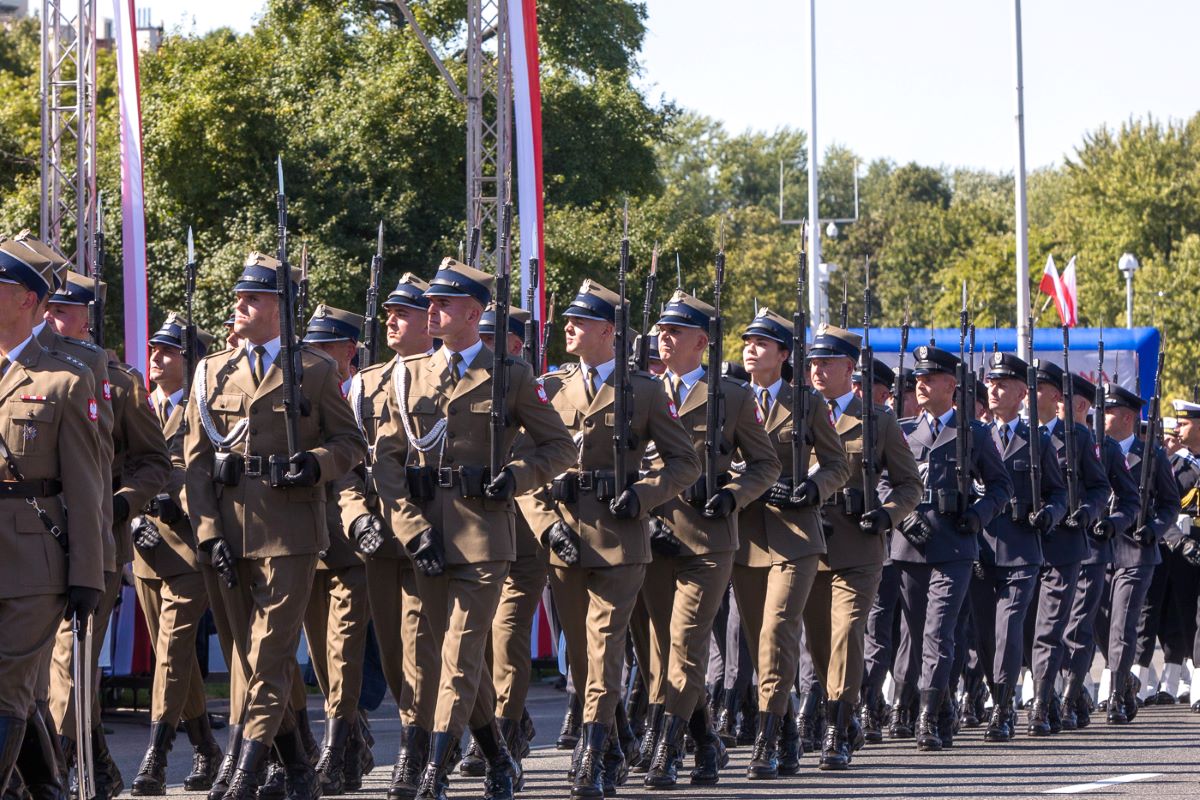 Po godzinie 14:00 warszawską Wisłostradą przeszła defilada Wojska Polskiego. Udział w niej wzięli żołnierze wszystkich rodzajów Sił Zbrojnych RP, którzy reprezentowali najnowocześniejszy sprzęt m.in. czołgi Abrams, haubice samobieżne K9, wyrzutnie rakietowe HIMARS i samobieżne armatohaubice Krab. Na niebie można było zobaczyć FA-50, wielozadaniowe samoloty bojowe F-16 i bezzałogowce.