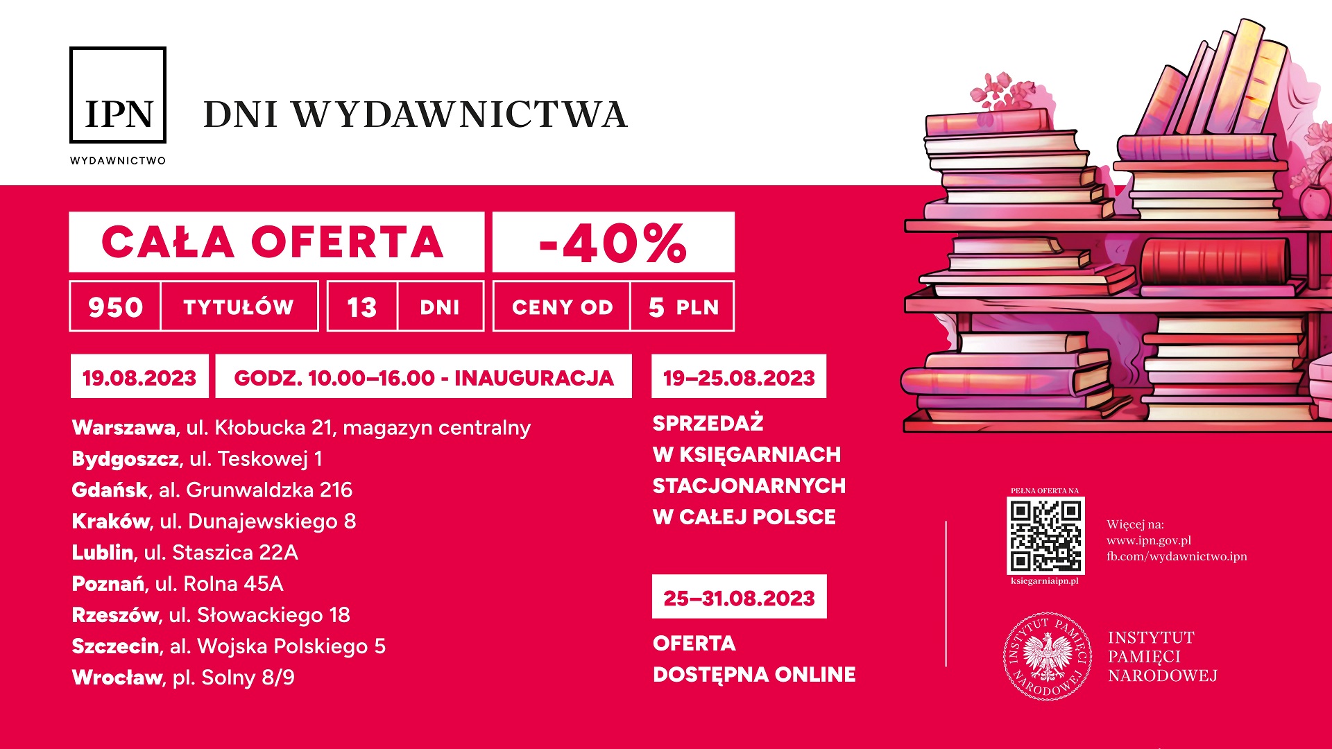19–25 sierpnia 2023 – sprzedaż we wszystkich 13 księgarniach stacjonarnych IPN w całej Polsce