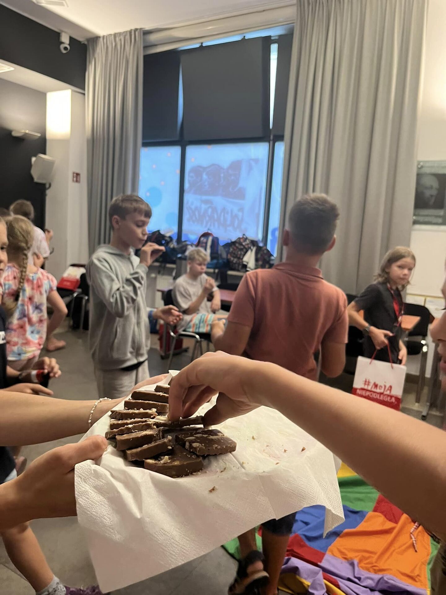 Słodkim uwieńczeniem był blok czekoladowy, czyli rarytas z czasów PRL oraz wizyta w kinie. Ponadto, każdy z uczestników otrzymał grę edukacyjną.