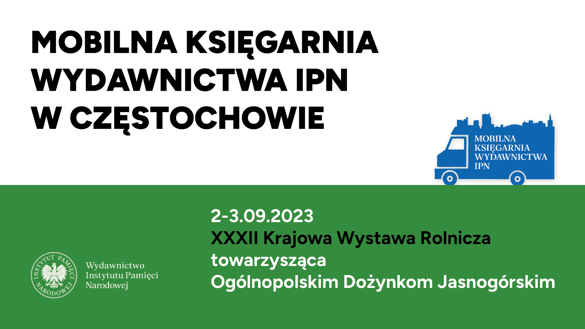 W dniach 2–3 września 2023 Wydawnictwo IPN zaprasza do odwiedzenia mobilnej księgarni, która czekać będzie na czytelników na parkingu wzdłuż ul. Kardynała Stefana Wyszyńskiego.