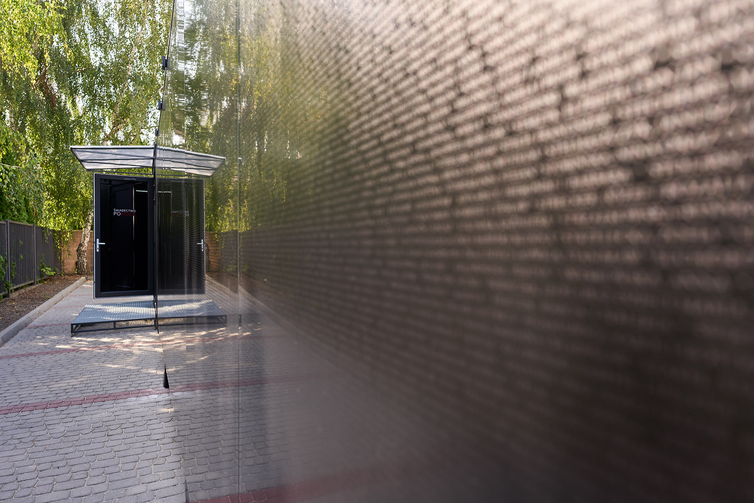 Wystawa rozpoczyna się na zewnątrz mobilnego kontenera, ponieważ jego z pozoru jednolicie czarne ściany, widziane z bliska pokryte są setkami imion i nazwisk oraz miejsc związanych z Polakami niosącymi pomoc Żydom. Po wejściu do wnętrza, pośrodku pomieszczenia ujrzymy instalację z 30 drewnianymi krzesłami, z leżącymi na nich i przygotowanymi do użytku zestawami do VR, umożliwiającymi zwiedzającym wejście do świata Wirtualnej Rzeczywistości.