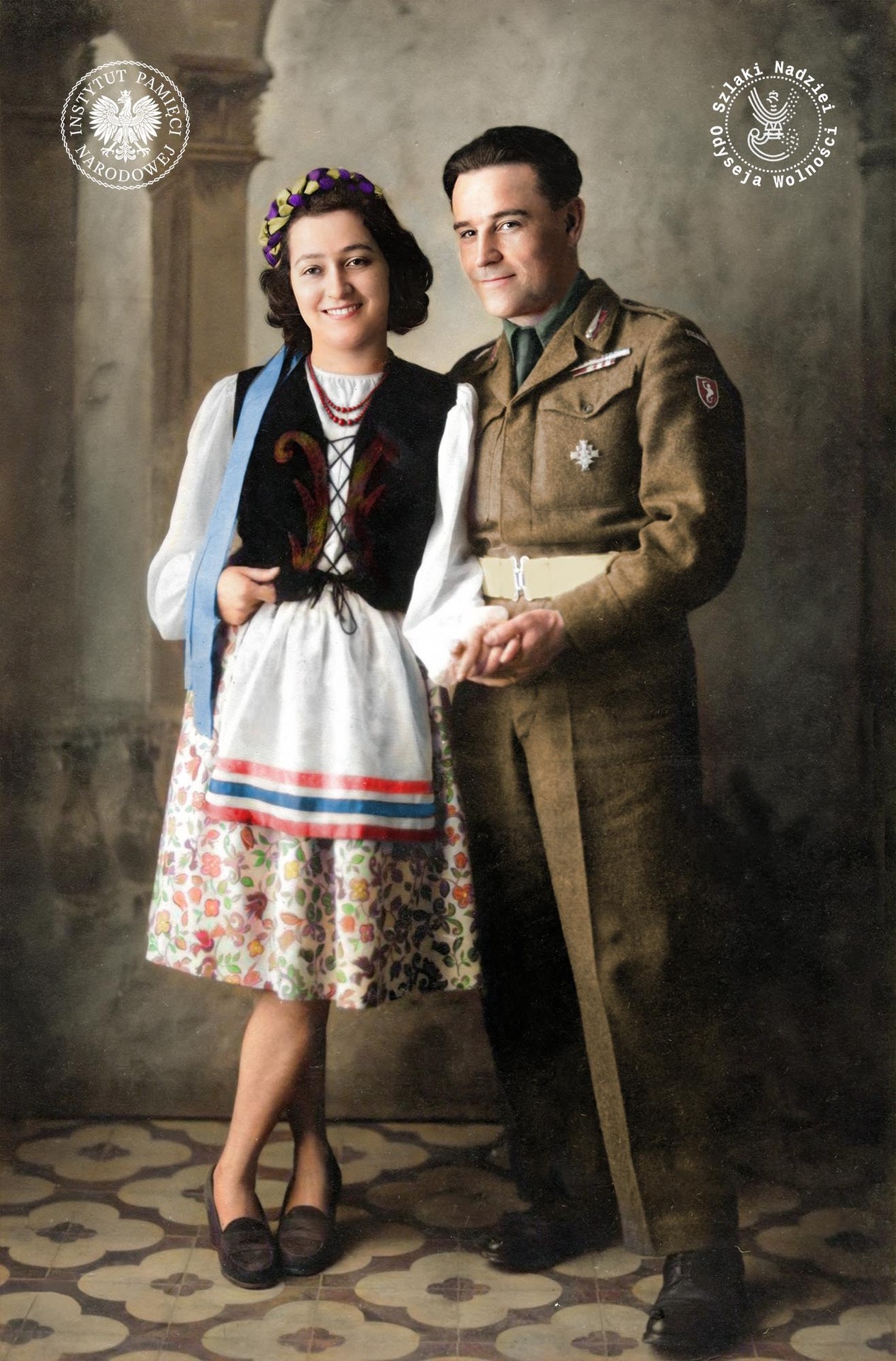 Silvia Szymula z domu Valli i Stefan Szymula, Dicomano, Włochy1945 r. (fot. zbiory Silvii Szymuli, reprodukcje cyfrowe w Bibliotece Polskiej im. Ignacego Domeyki w Buenos Aires, zdjęcie udostępnione przez Fundację Ośrodka KARTA)
