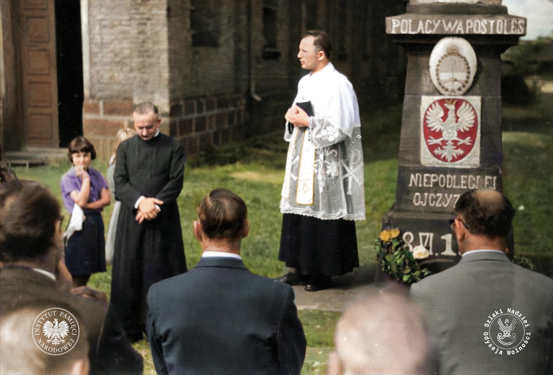 Uroczystość przy pomniku upamiętniającym odzyskanie niepodległości przez Polskę, usytuowanym przy kościele pw. św. Piotra, wzniesionym przez polskich osadników w 1919 r., Apostoles (fot. Centralne Archiwum Historyczne Redemptorystów w Wiceprowincji Resistencia, zdjęcie udostępnione przez Fundację Ośrodka KARTA)