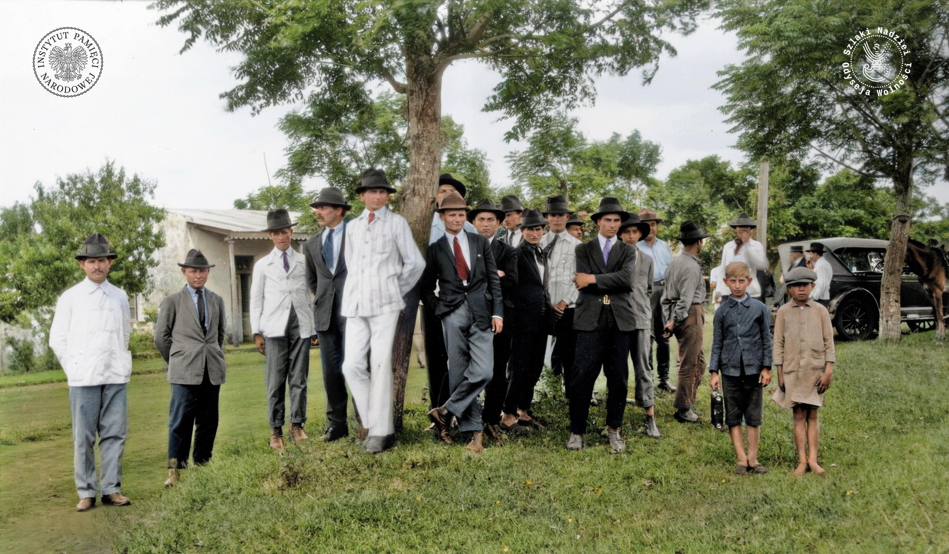 Polacy przed mszą św. w Apóstoles, Misiones, Argentyna, 1928 r. (fot. Stanisław Pyzik, Biblioteka Polska im. Ignacego Domeyki, zdjęcie udostępnione przez Fundację Ośrodka KARTA)