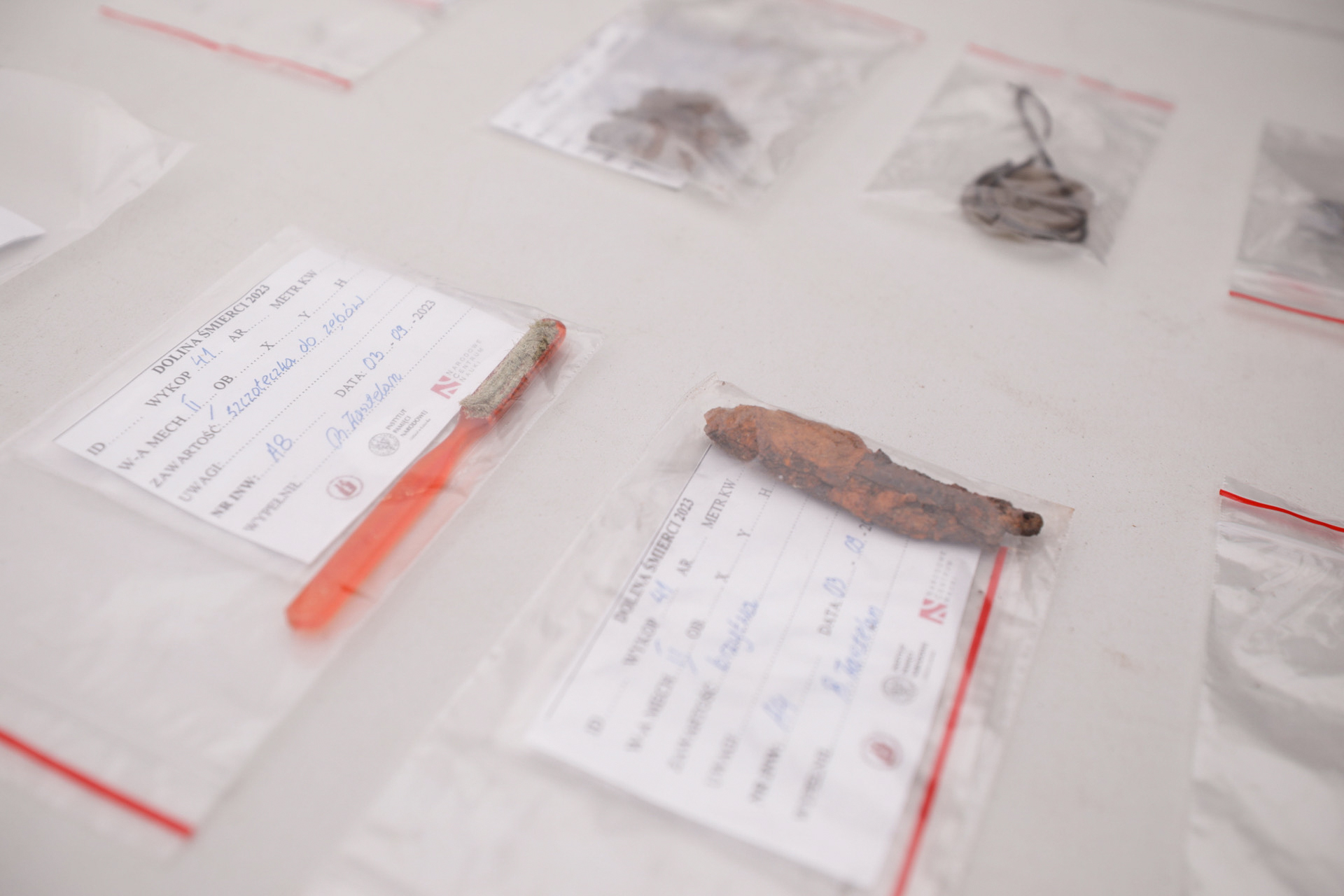 Oprócz zabezpieczonych szczątków zostały odnalezione przedmioty, które były związane z tymi osobami. Są to szczoteczka do zębów, brzytwa, guziki, szczątki odzieży.