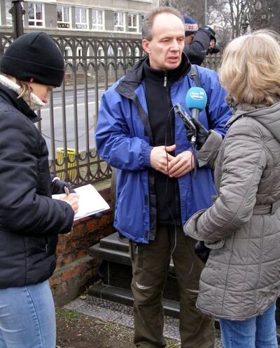 Dr hab. Krzysztof Szwagrzyk - naczelnik OBEP we Wrocławiu zapoznaje dziennikarzy ze szczegółami badań -